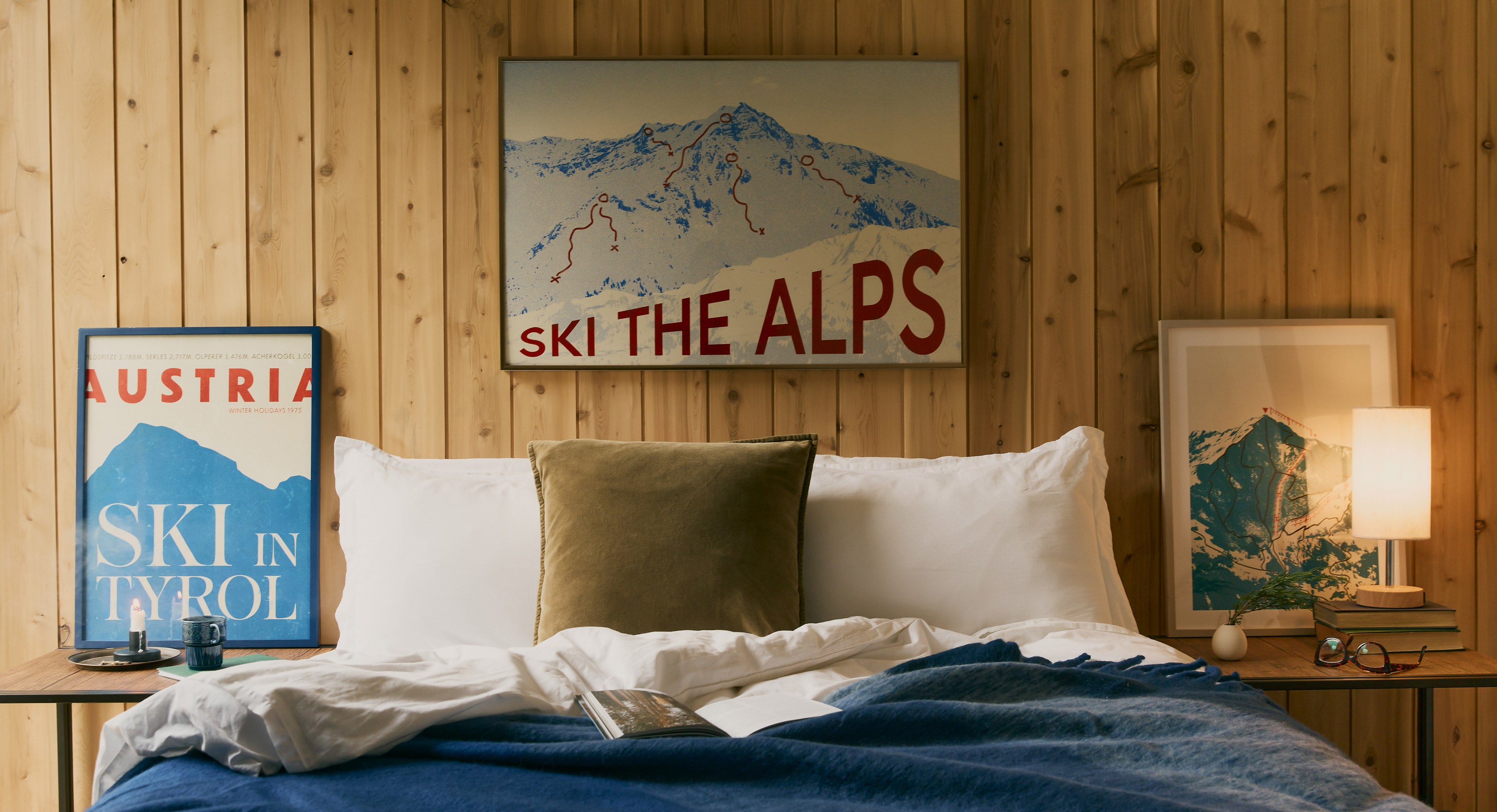 En l'honneur de la saison, notre studio de design a créé une collection pour célébrer cette période magique dans les montagnes. Vacances alpines est notre nouvelle collection d'affiches et de papiers peints destinée à vous immerger dans l'esprit de l'hiver. Que vous prépariez votre chalet ou aménagez votre appartement pour les prochains mois, elle vous permettra d'être prêt pour l'après-ski.