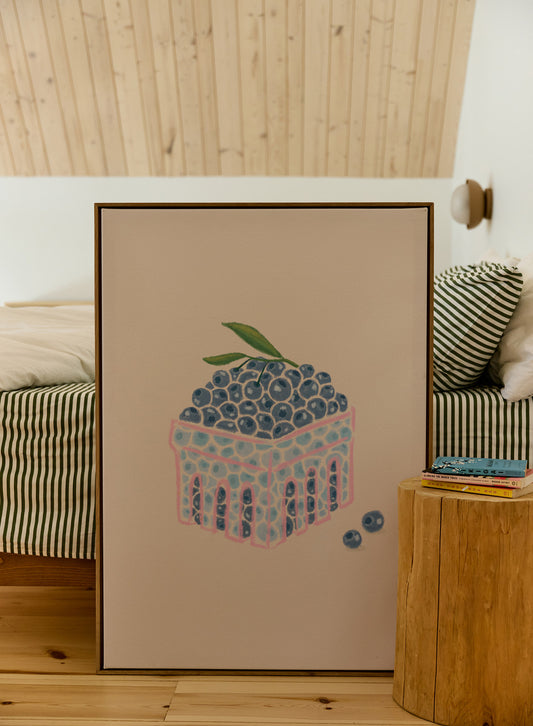 Panier de bleuets, Œuvre sur toile
