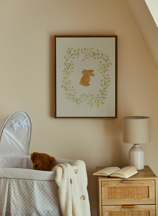 Lapineau dans les fleurs, Œuvre sur toile
