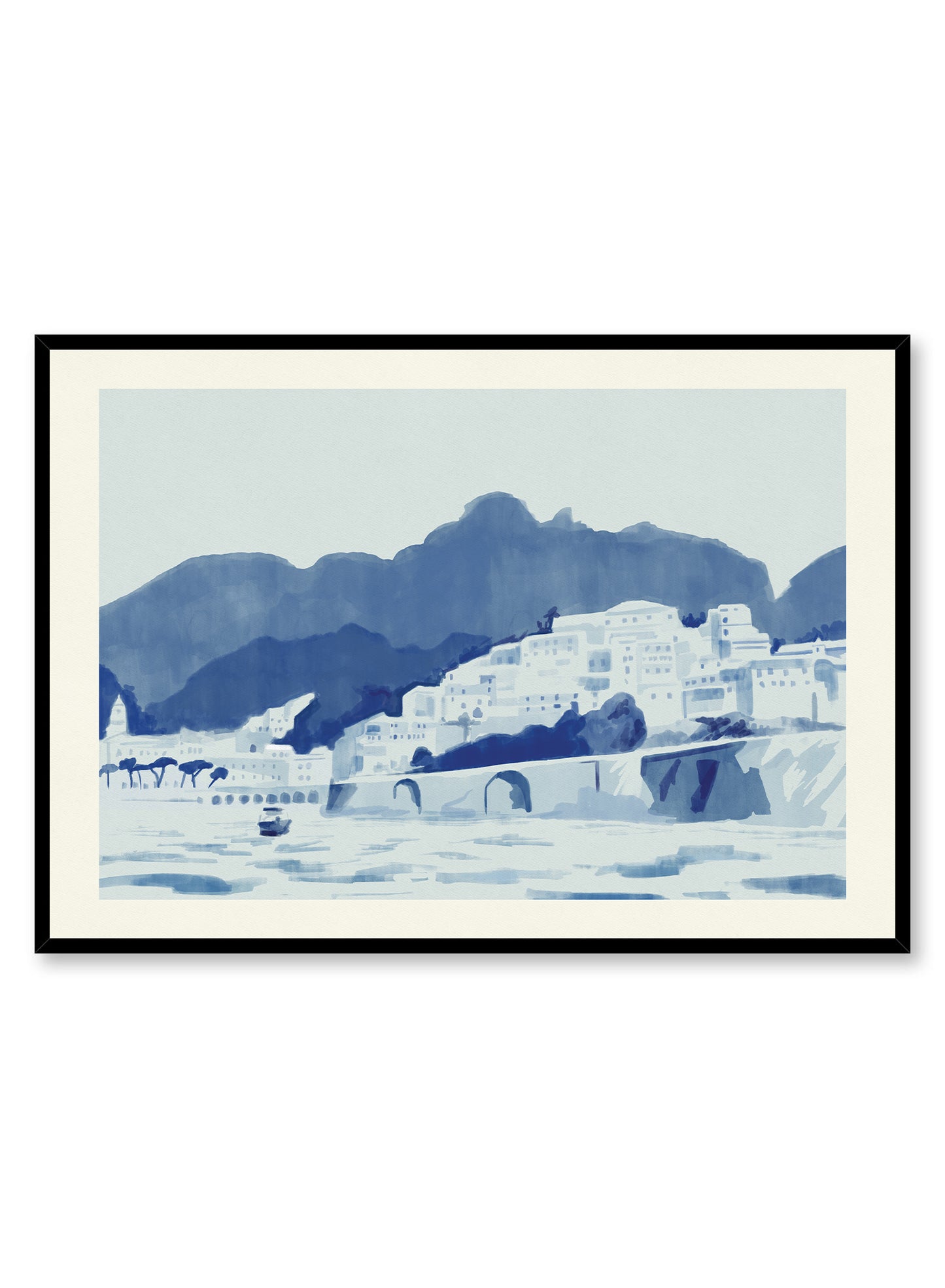 Une magnifique pièce pour apporter une touche d'évasion et de sophistication à un salon ou un bureau. Elle s'associe parfaitement à l'église Blue Dome affiche pour créer un diptyque côtier cohérent.