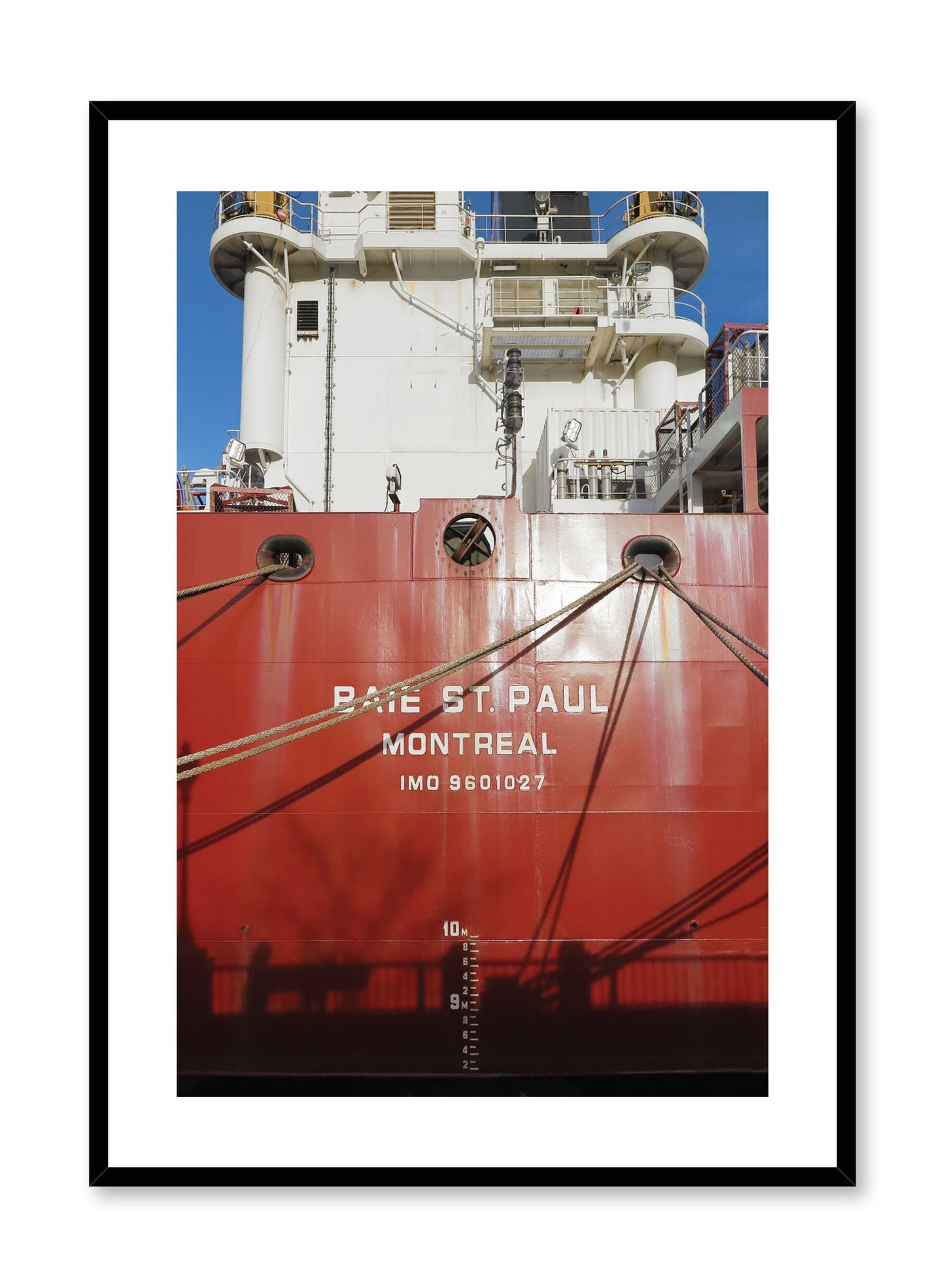 Un énorme bateau de cargaison amarré après un long voyage sur le fleuve Saint-Laurent.