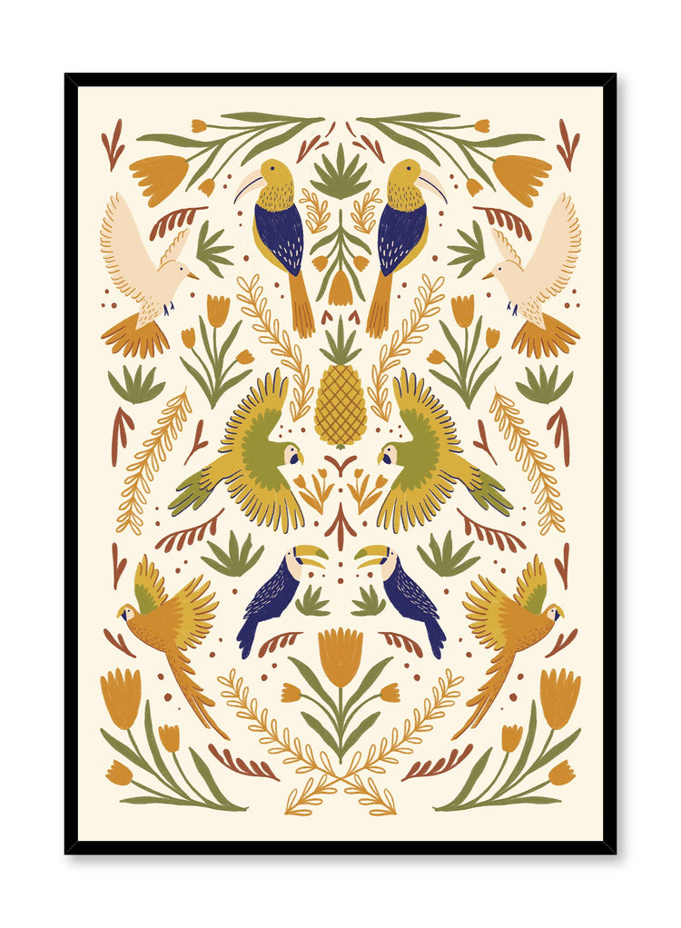 L’affiche ‘Paradis d’oiseaux’ saisit ces oiseaux tropicaux en plein envol afin qu’on puisse admirer toute leur splendeur. Sublimez le décor de vos enfants avec cette affiche d’animaux mettant en scène des oiseaux exotiques entourés de design botanique et de fleurs. Cette affiche colorée combine des le jaune et l’orange avec des touches de vert et de bleu marin pour un effet qui fera sourire aux petits comme aux grands.