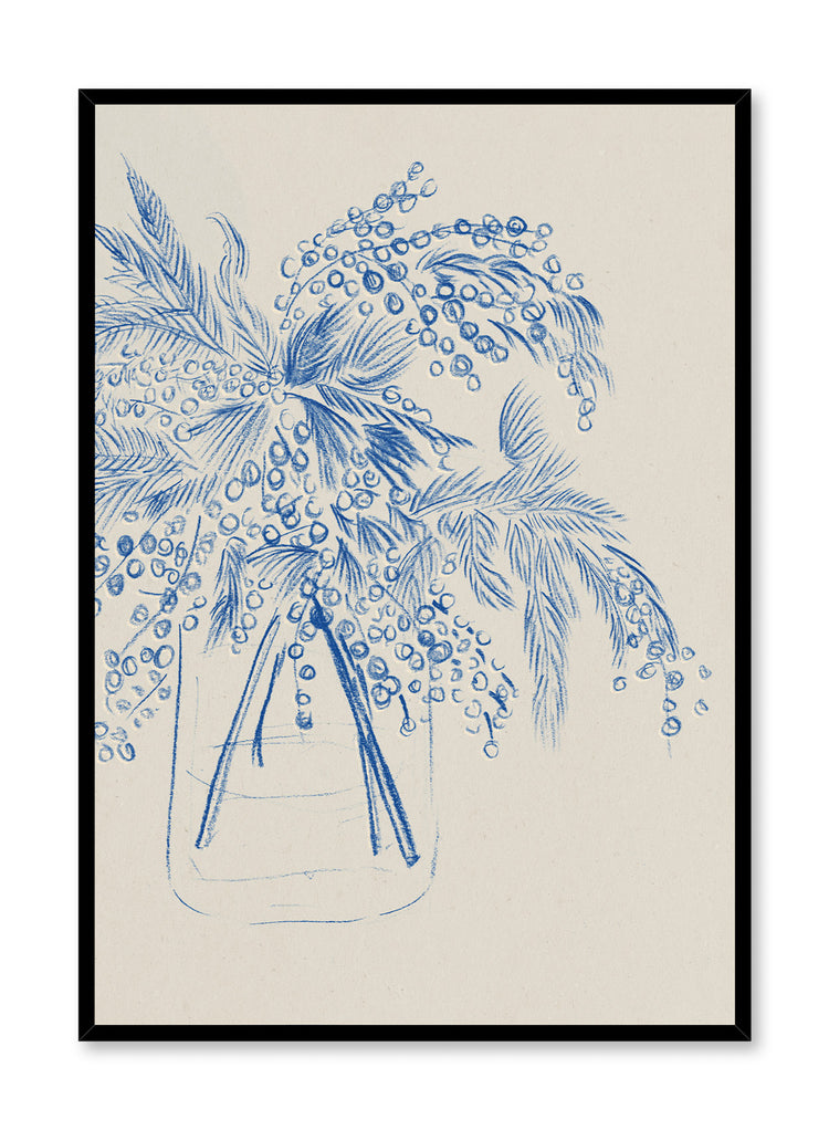 Apportez grâce et beauté à votre espace avec cette illustration florale minimaliste de fleurs bleues dans un vase.