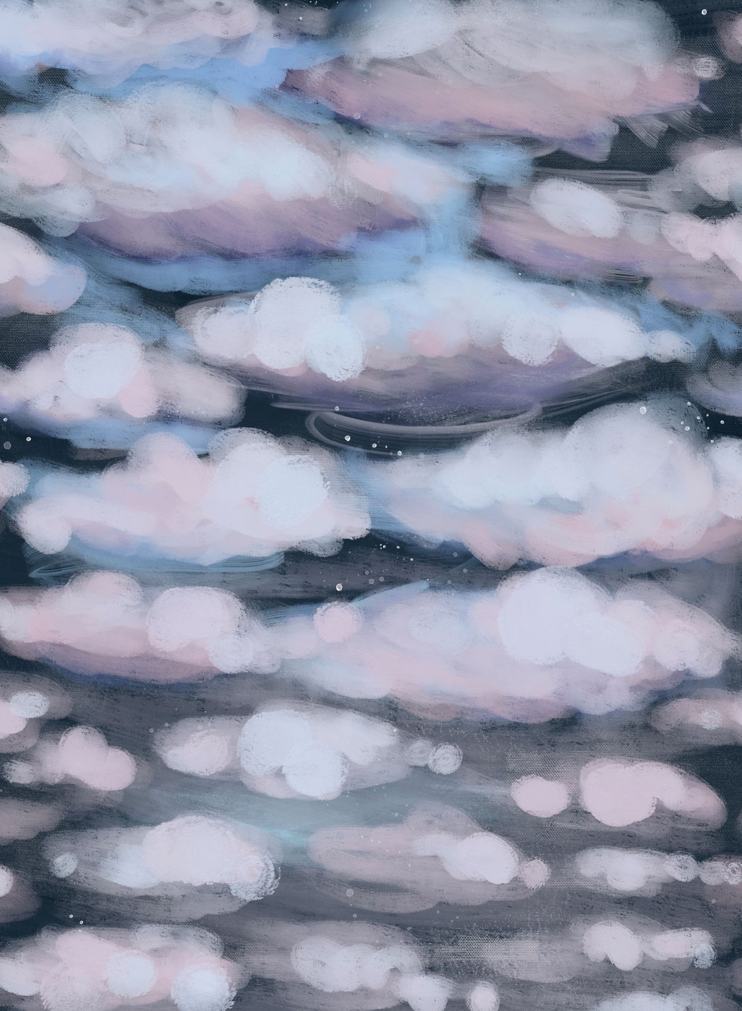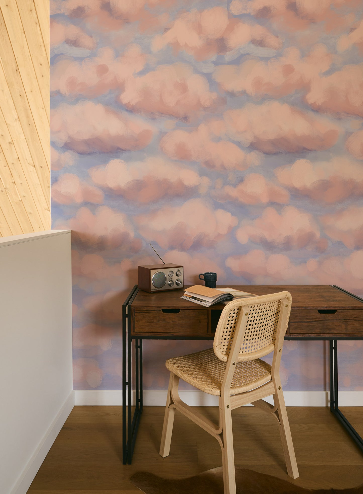 Infusez de la dopamine dans votre espace avec Cieux sucrés : un motif peint de rêve de nuages colorés flottant dans le ciel.