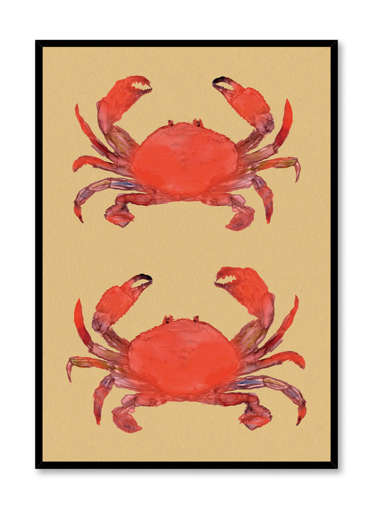 Deux fois plus de crabes, deux fois plus de plaisir ! Ajoutez une touche de couleur à votre décor avec cette illustration d'un duo de crabes rouges sur un fond sablonneux.