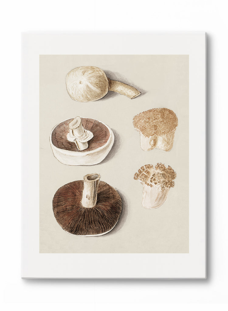 Les formes variées, allant des champignons de Paris aux vesse-de-loup, donnent une idée de la diversité de la nature. La composition invite à une contemplation tranquille, en faisant un ajout parfait aux espaces qui célèbrent le monde naturel, comme les cuisines, les bureaux, ou même les intérieurs remplis de plantes où ses formes organiques peuvent compléter le décor.