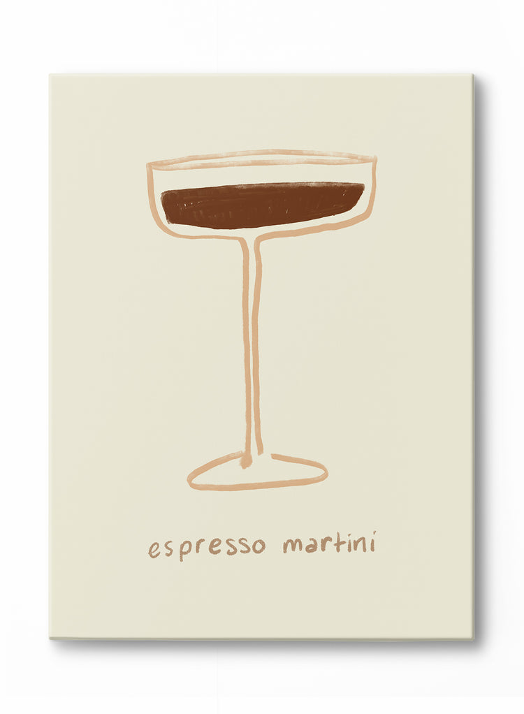 Un café revigorant et un cocktail onctueux en une seule gorgée... Qui pourrait résister à un "Martini espresso" ? Cette œuvre sur toile d'art minimaliste illustre un verre à martini chic rempli d'un délicieux cocktail brun.