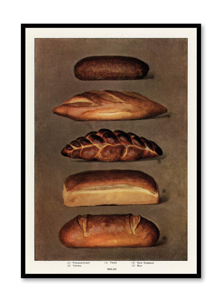 Les croûtes croustillantes et les intérieurs moelleux sont rendus avec un détail précis, faisant presque ressentir la texture au spectateur. L'arrangement ordonné ajoute une touche de structure au sujet autrement familier, en faisant une addition parfaite aux cuisines ou aux salles à manger où sa chaleur et sa simplicité peuvent évoquer un sentiment de confort et d'abondance.