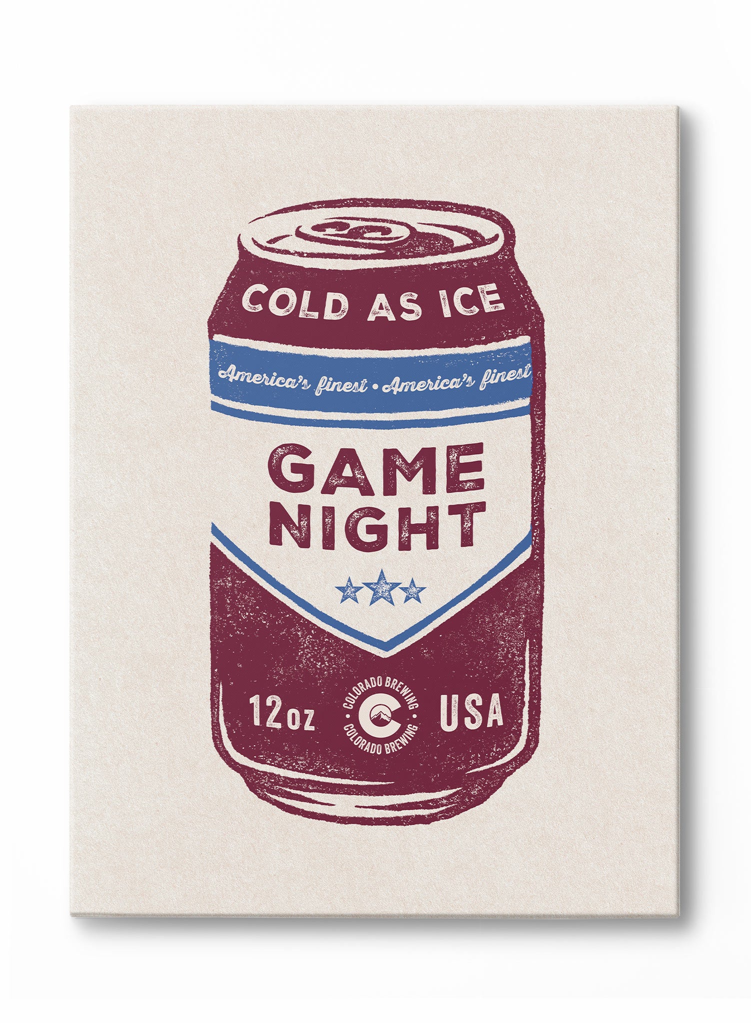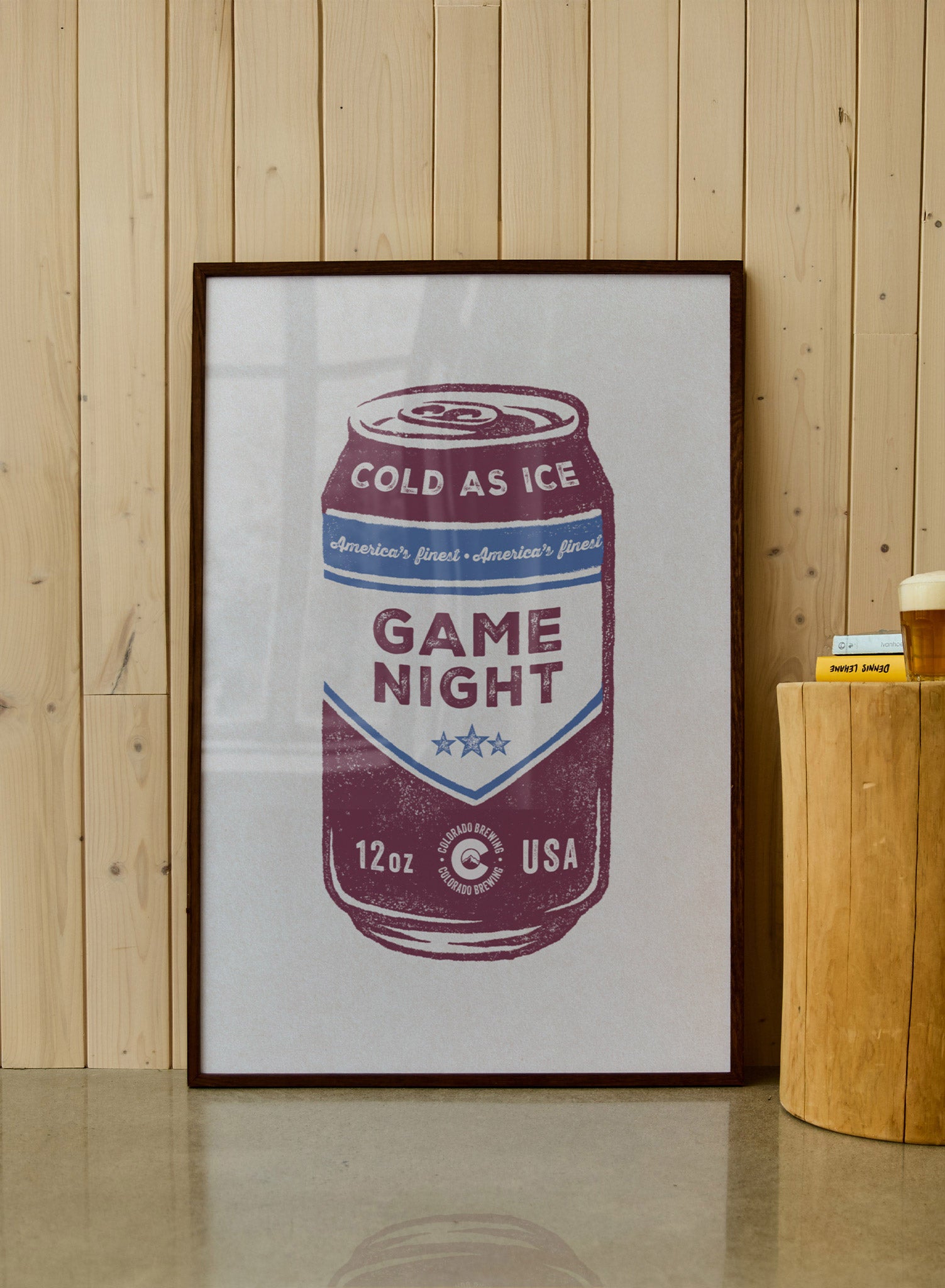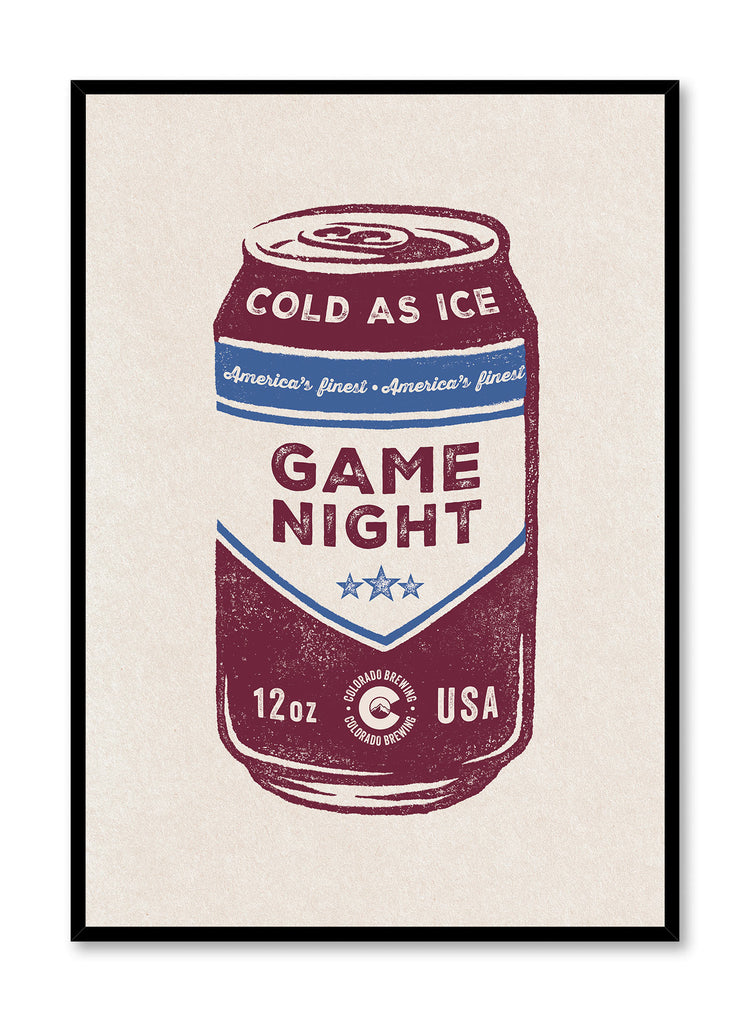 Jour de match à Denver amène l’ambiance des soirs de match jusque sur vos murs. Cette affiche de cannette de bière inspirée du hockey rend hommage à votre équipe avec style. Un clin d'œil déco qui trouve sa place partout où le hockey est plus qu’un sport — c’est une fierté. 🏒🍻