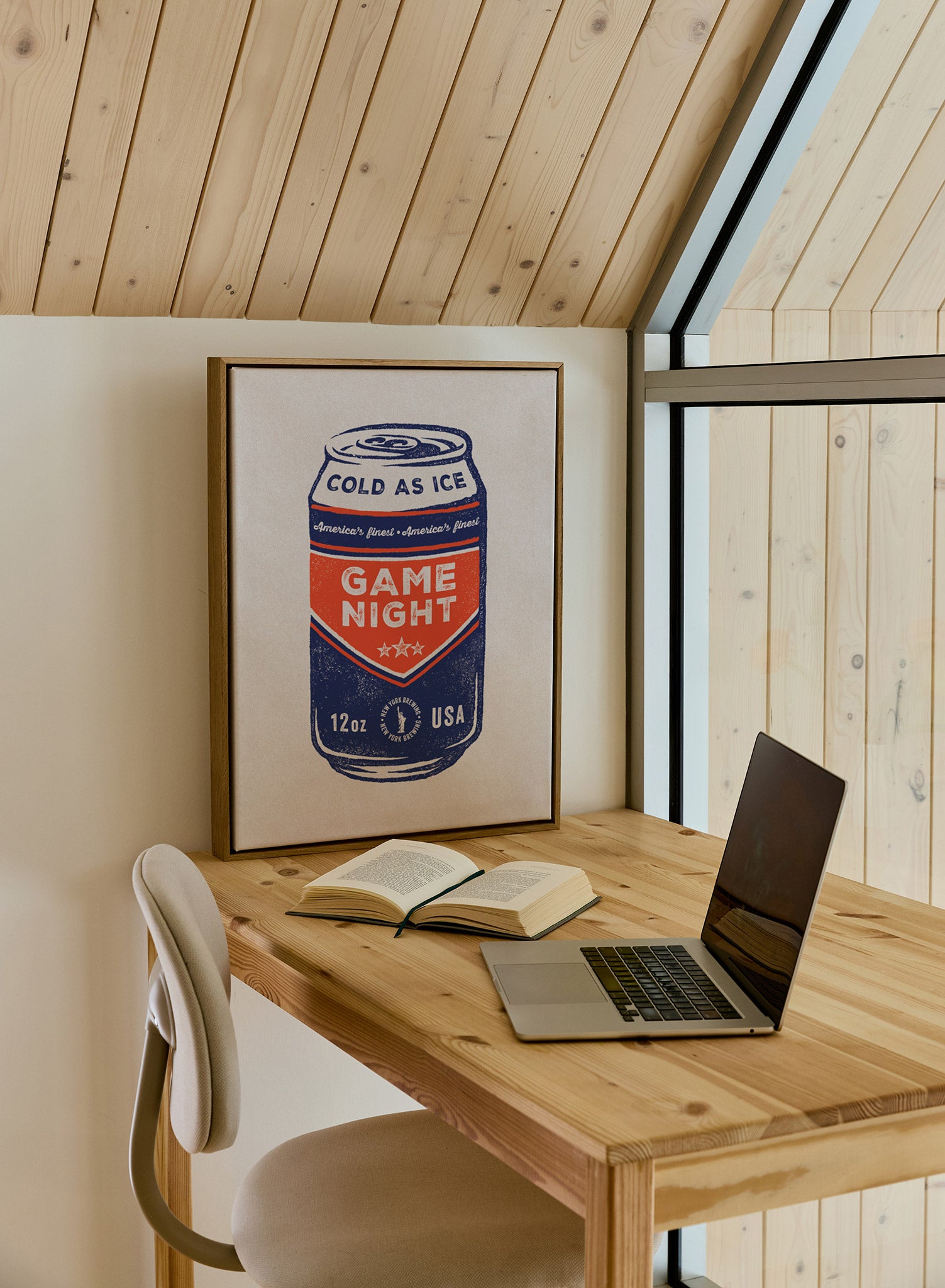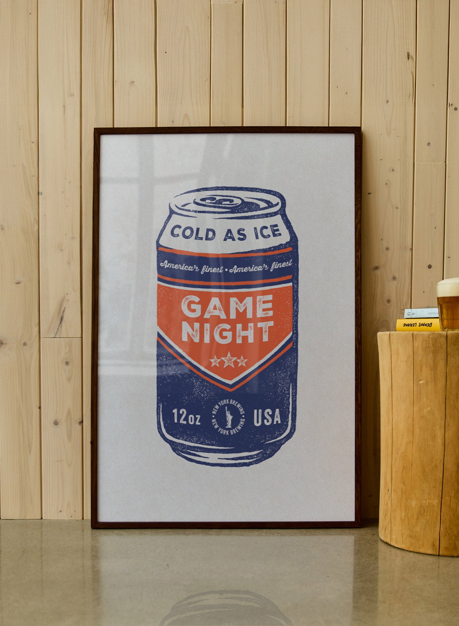 Jour de match à Long Island amène l’ambiance des soirs de match jusque sur vos murs. Cette affiche de cannette de bière inspirée du hockey rend hommage à votre équipe avec style. Un clin d'œil déco qui trouve sa place partout où le hockey est plus qu’un sport — c’est une fierté. 🏒🍻