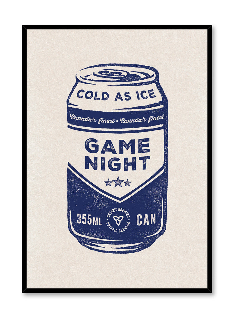 Jour de match à Toronto amène l’ambiance des soirs de match jusque sur vos murs. Cette affiche de cannette de bière inspirée du hockey rend hommage à votre équipe avec style. Un clin d'œil déco qui trouve sa place partout où le hockey est plus qu’un sport — c’est une fierté. 🏒🍻