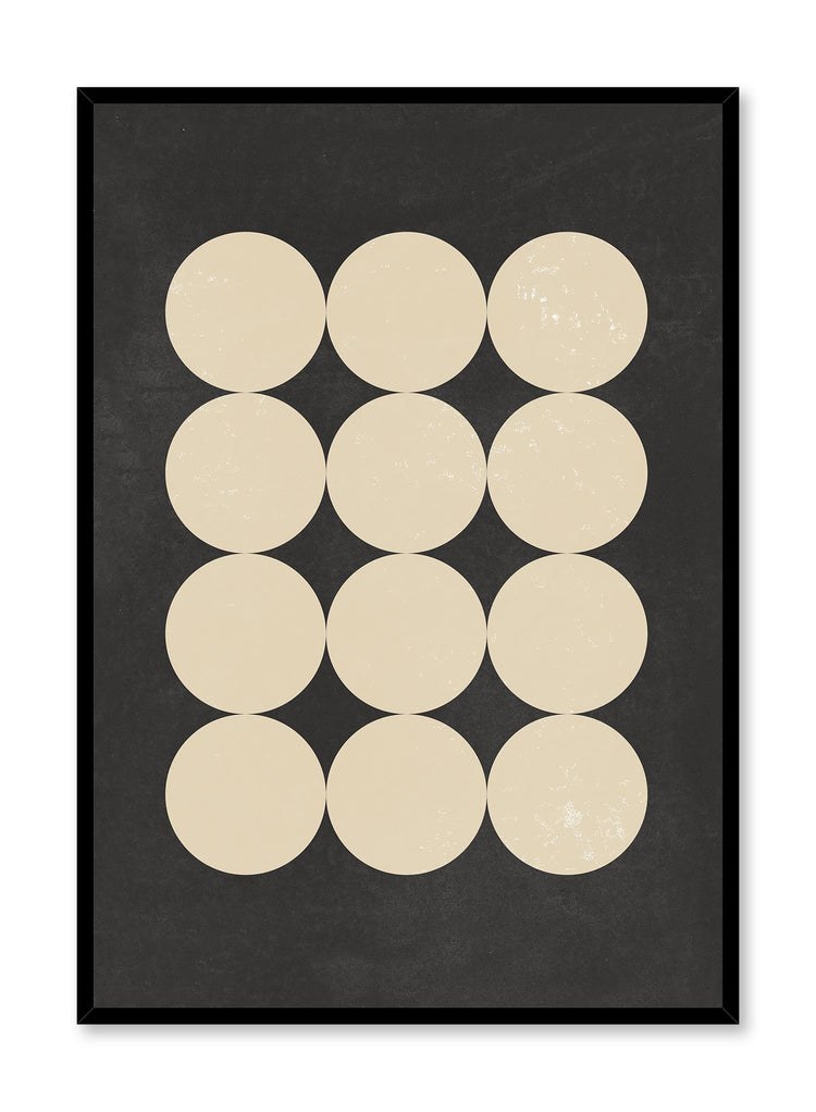 Dites bonjour à Herbert : une affiche du Bauhaus avec une composition circulaire étonnante. Cette impression d'art moderne du milieu du siècle présente 12 cercles beiges texturés sur un fond noir anthracite. Accrochez cette affiche chez vous et attendez que les compliments affluent !