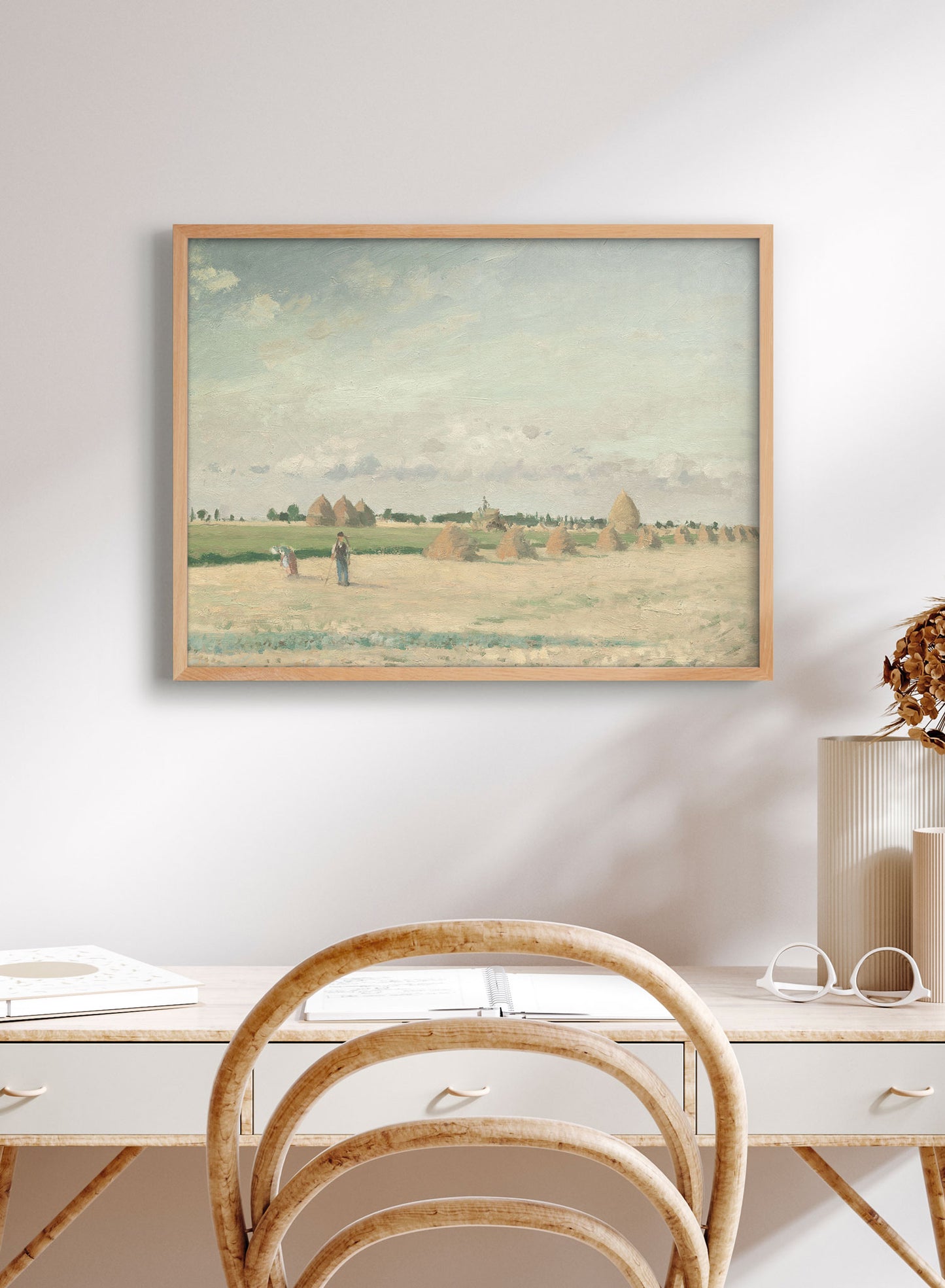 Un autre paysage ensoleillé de l'artiste Camille Pissarro! ‘Paysage, Ile-de-France’ représente un fermier sur sa terre sous un ciel bleu clair.