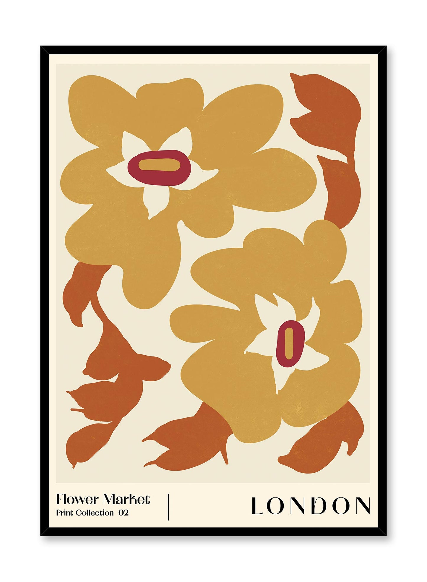 Amoureux.ses de fleurs ? Celle-ci est pour vous ! Cette sublime affiche combine l'esthétisme des années 70s avec la tendance des affiches de marchés de fleurs pour un résultat à couper le souffle. L’affiche « Marché de Londres » inclut de larges fleurs abstraites jaunes et rouges orangés sur un fond vert très pâle et beige. Vous allez adorer la riche texture et la typographie vintage de cette jolie affiche.