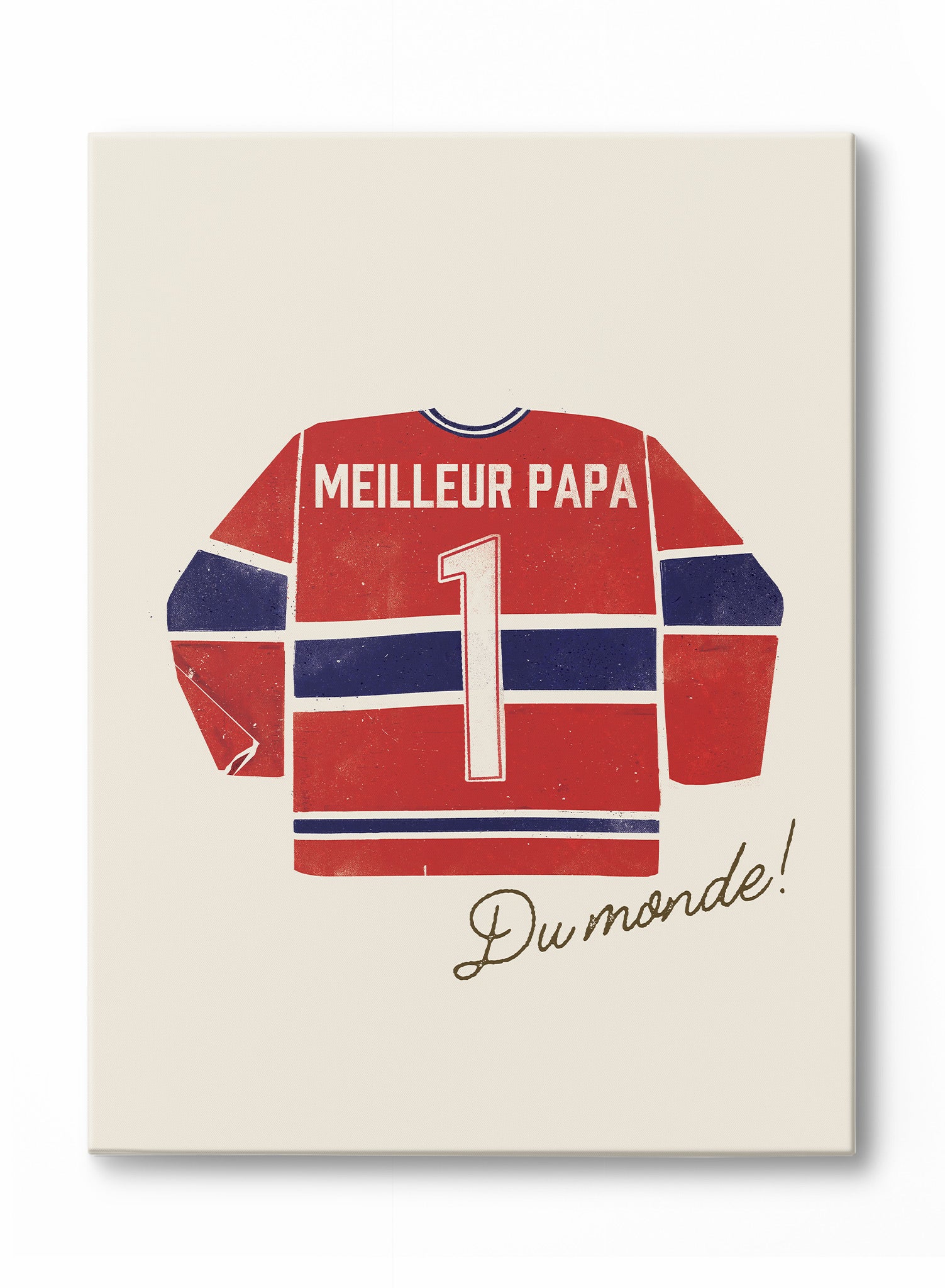 Célébrant la paternité avec un enthousiasme sportif, ce affiche d'inspiration vintage arbore un maillot de hockey rouge classique, personnalisé avec le message réconfortant « Meilleur Papa Du Monde ! » Des lignes audacieuses et épurées, ainsi qu'une esthétique authentique, mettent en valeur la fierté de l'équipe avec une touche de sentimentalisme.