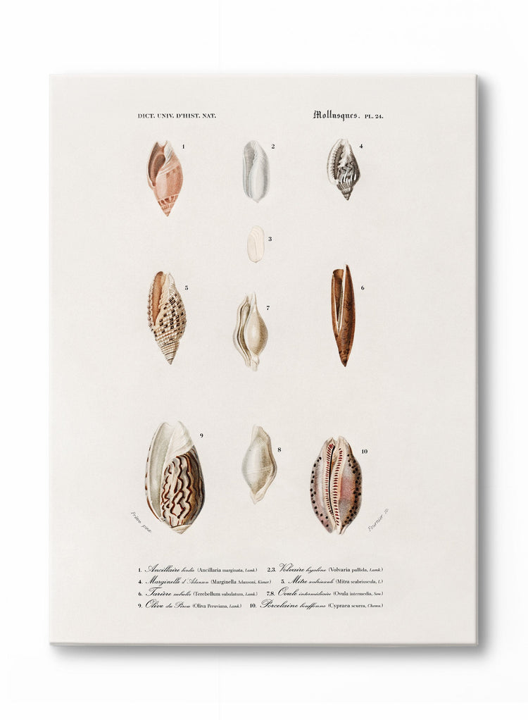 Il n'y a pas deux coquillages qui se ressemblent. Et nous pourrions nous perdre dans les détails qui rendent chacune des conques de cette œuvre sur toile vintage si unique !