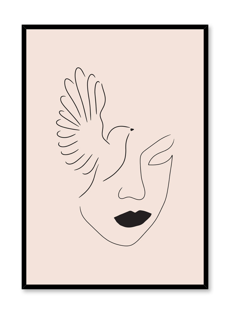 Que votre regard soit attiré par la personne ou par la colombe de cette affiche murale, l’œuvre revêt véritablement un style à la fois élégant et saisissant.