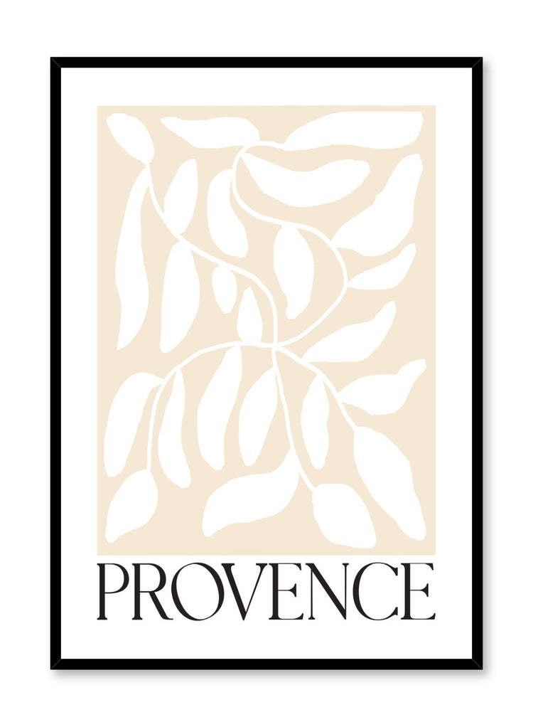 • "Provence" is a minimalist  botanical illustration poster by Opposite Wall of vintage white leaves over a beige background and the a "Provence" typography print.