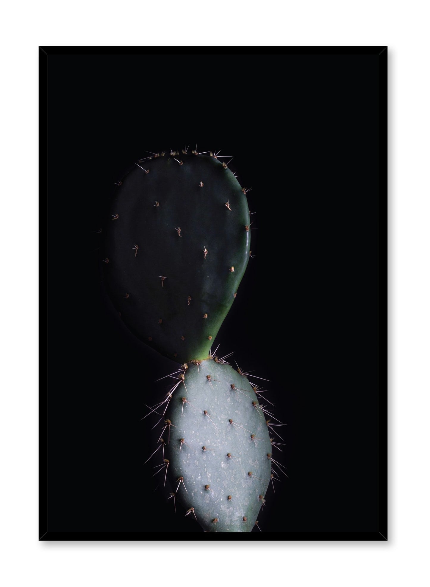 La lumière joue à cache-cache sur ce cactus Opuntia, tout en courbes sur fond noir.