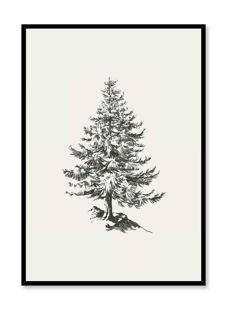 Est-ce que ça sent le pin frais ici ? Ou est-ce juste l'affiche "Forêt Féérique" ? Cette illustration hivernale nostalgique en noir et blanc représente un grand arbre de Noël.