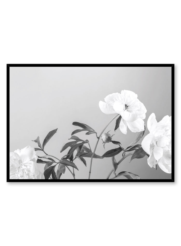 Ces pivoines blanches sont encore plus élégantes lorsque captées en noir et blanc, magnifiant leur présence délicate et artistique.