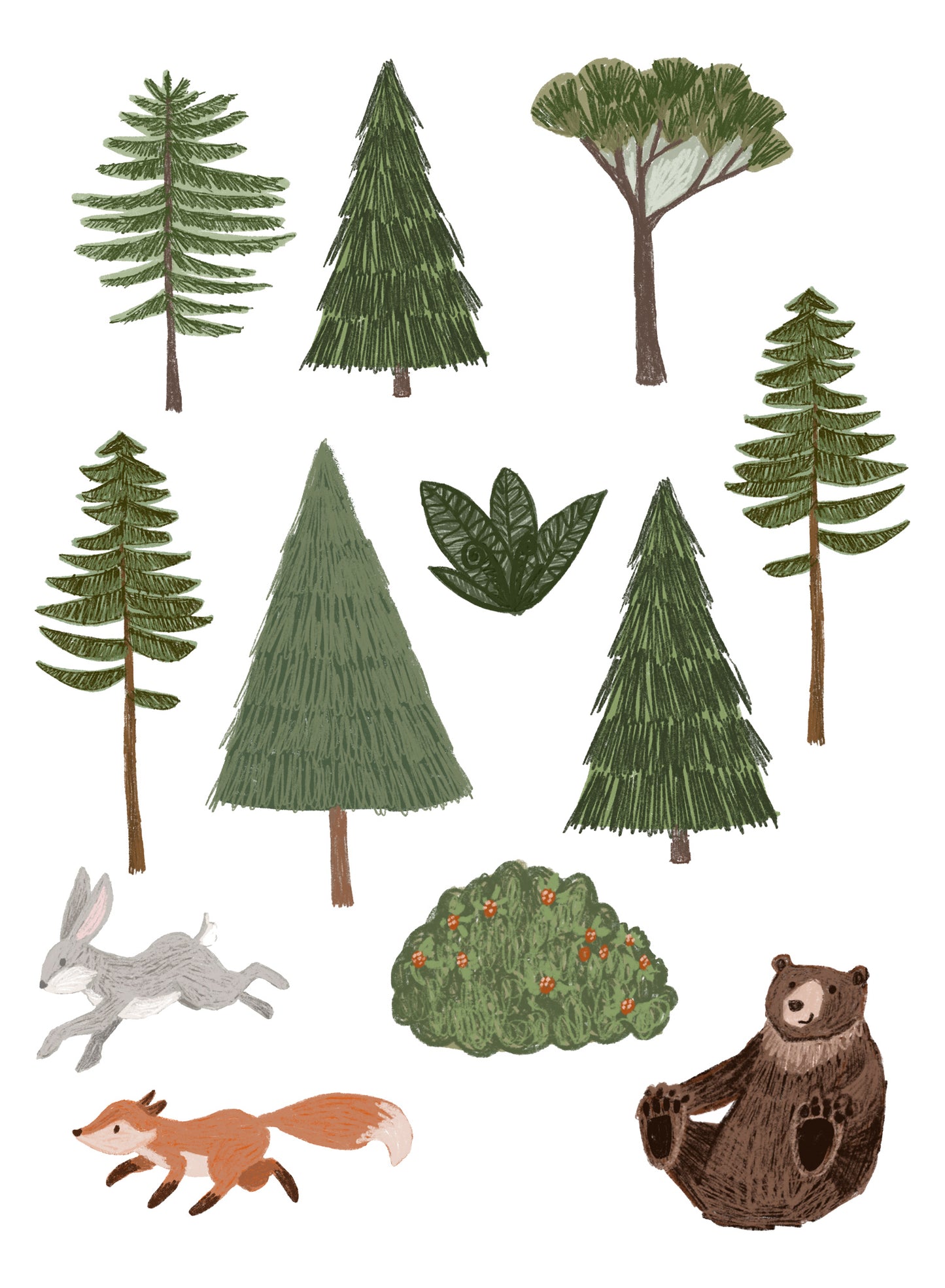 Évoquez la beauté de la forêt dans la chambre ou la salle de jeux de vos enfants avec ces autocollants muraux amovibles. Ces décalques muraux en vinyle comprennent une variété d’arbres et arbustes ainsi qu’un ours, un renard et un lièvre. Ces autocollants de forêt sont faciles à installer, n'abîment pas vos murs et peuvent être disposés d'une infinité de façons !