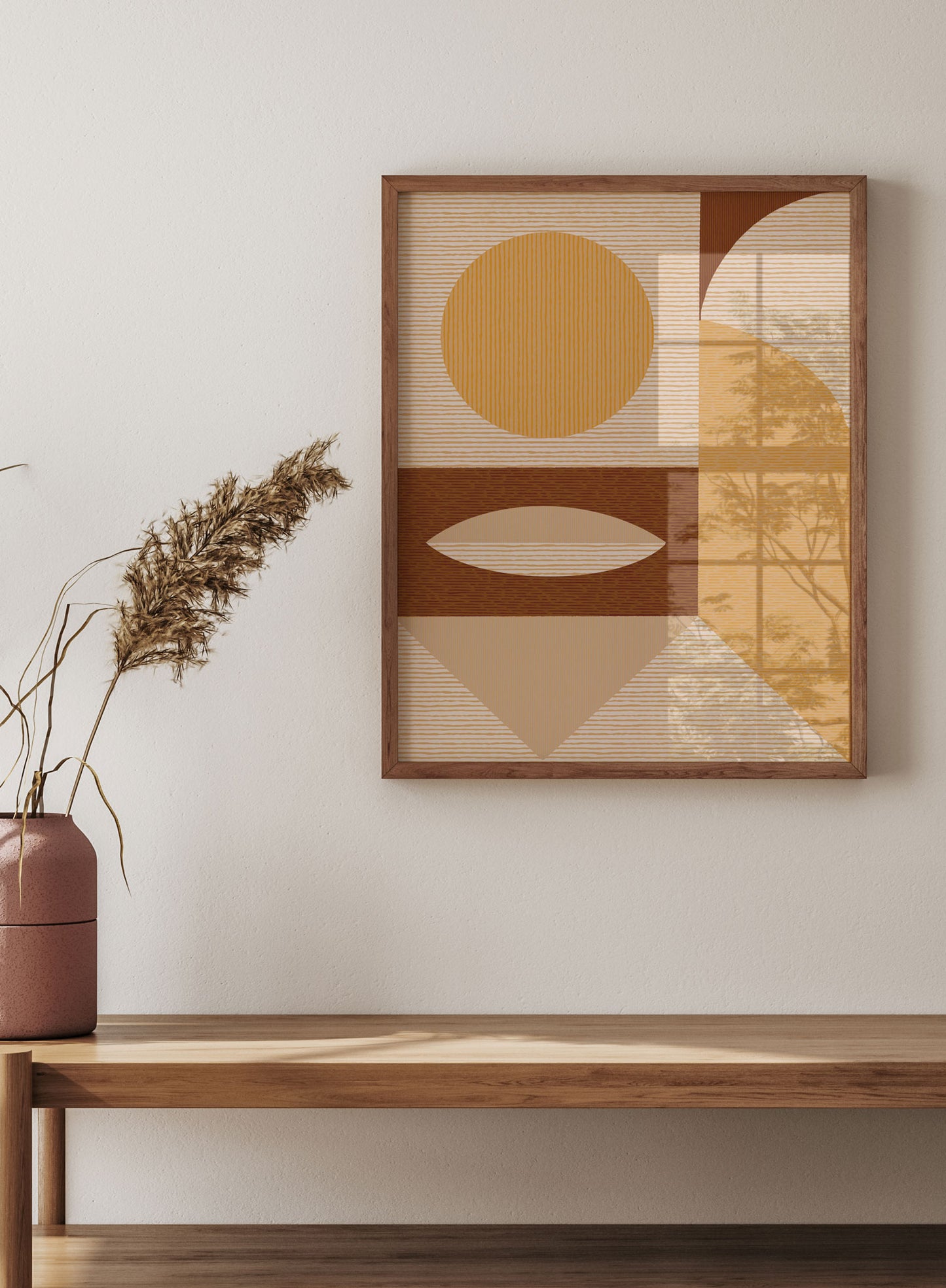 Texture? Check. Color? Check. Style? Double check! The 70s Dream art print is a must-have for all those who simply adore the 70s aesthetic. This textured abstract poster features boho geometric shapes like arches and circles in a warm color palette of orange, brown and beige. Fine lines create the illusion this poster is made from linen and cotton fabrics.