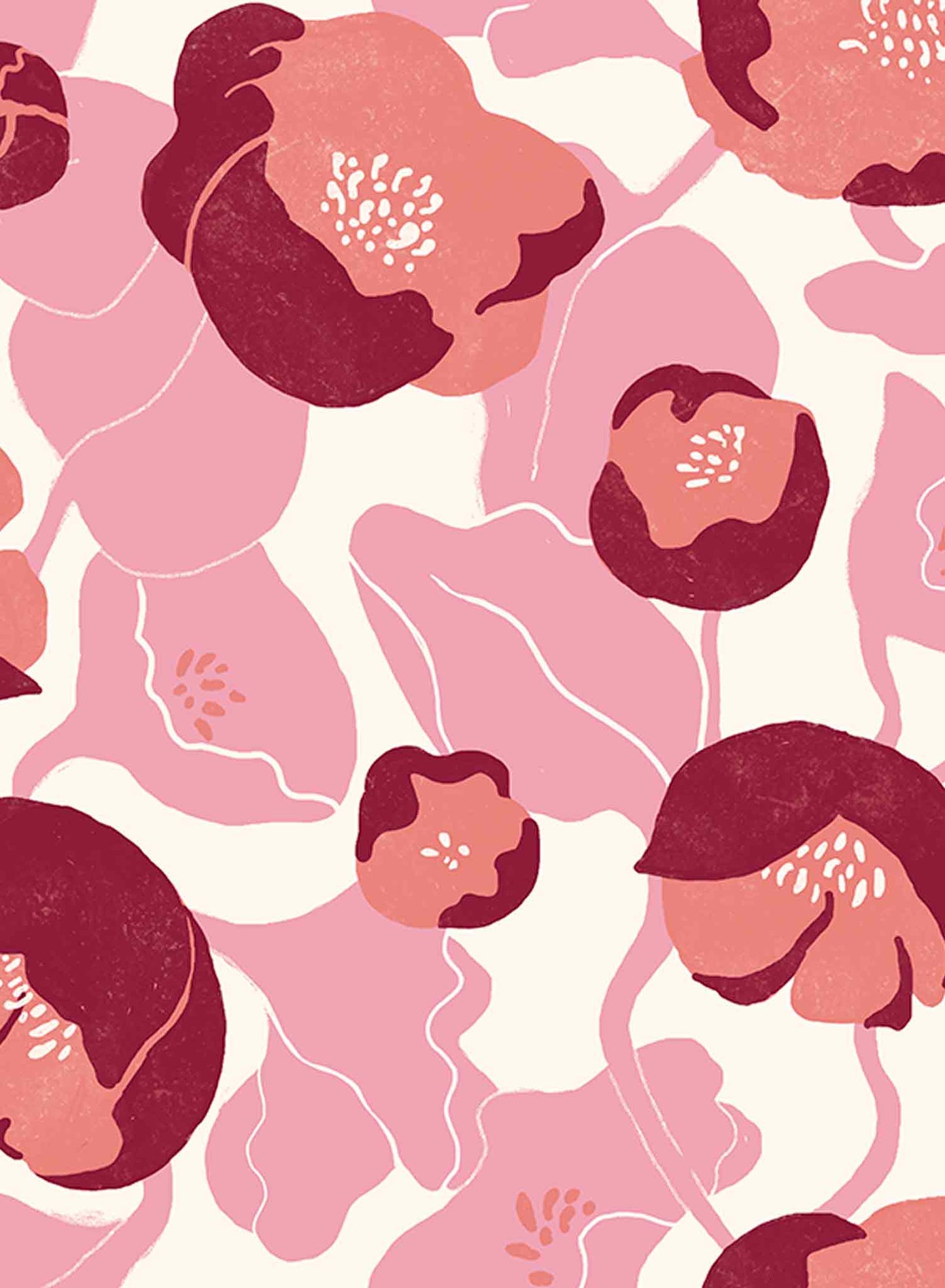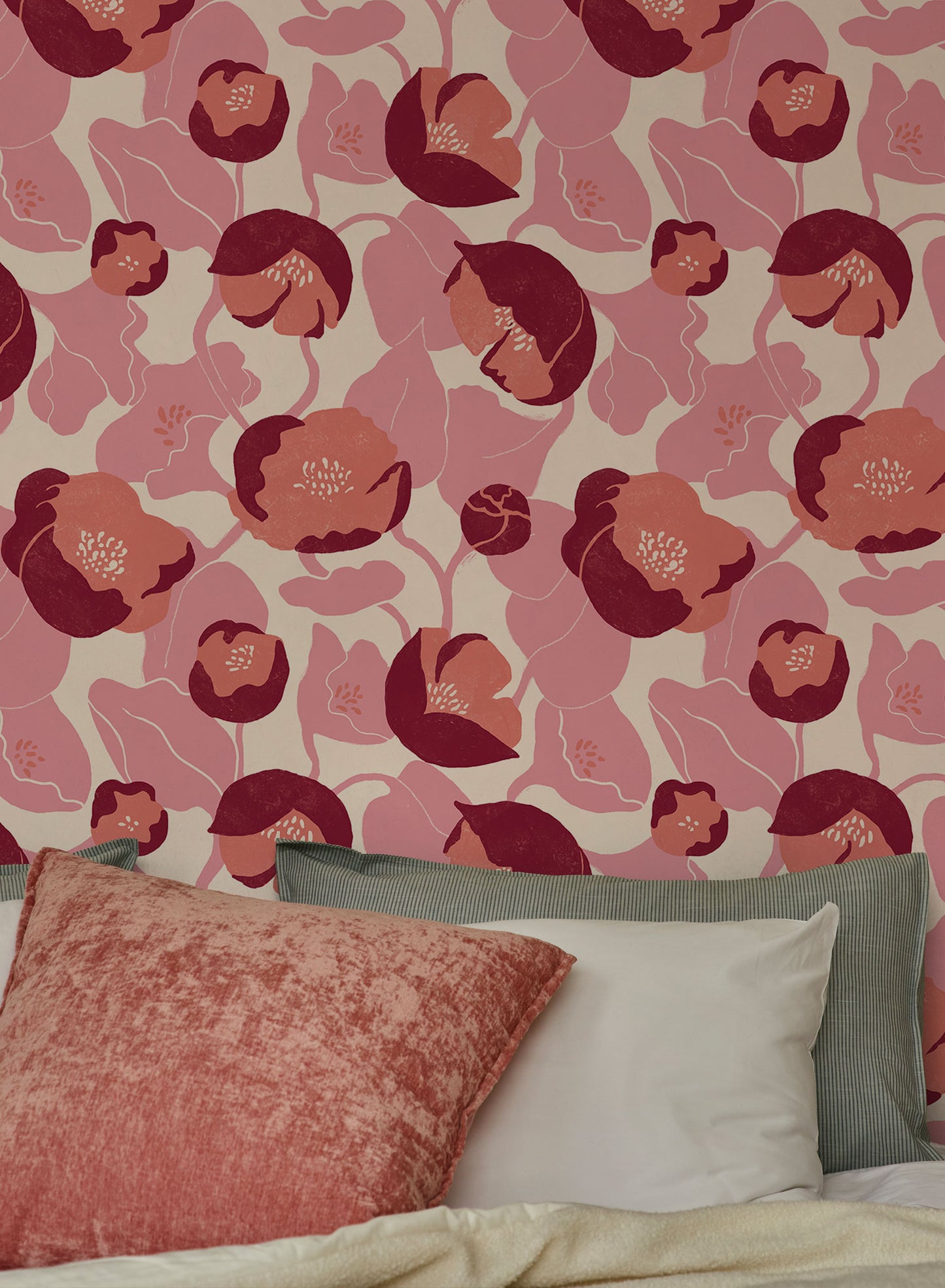 Make the effervescence of spring last all year with this floral wallpaper pattern composed of layers of large flowers.