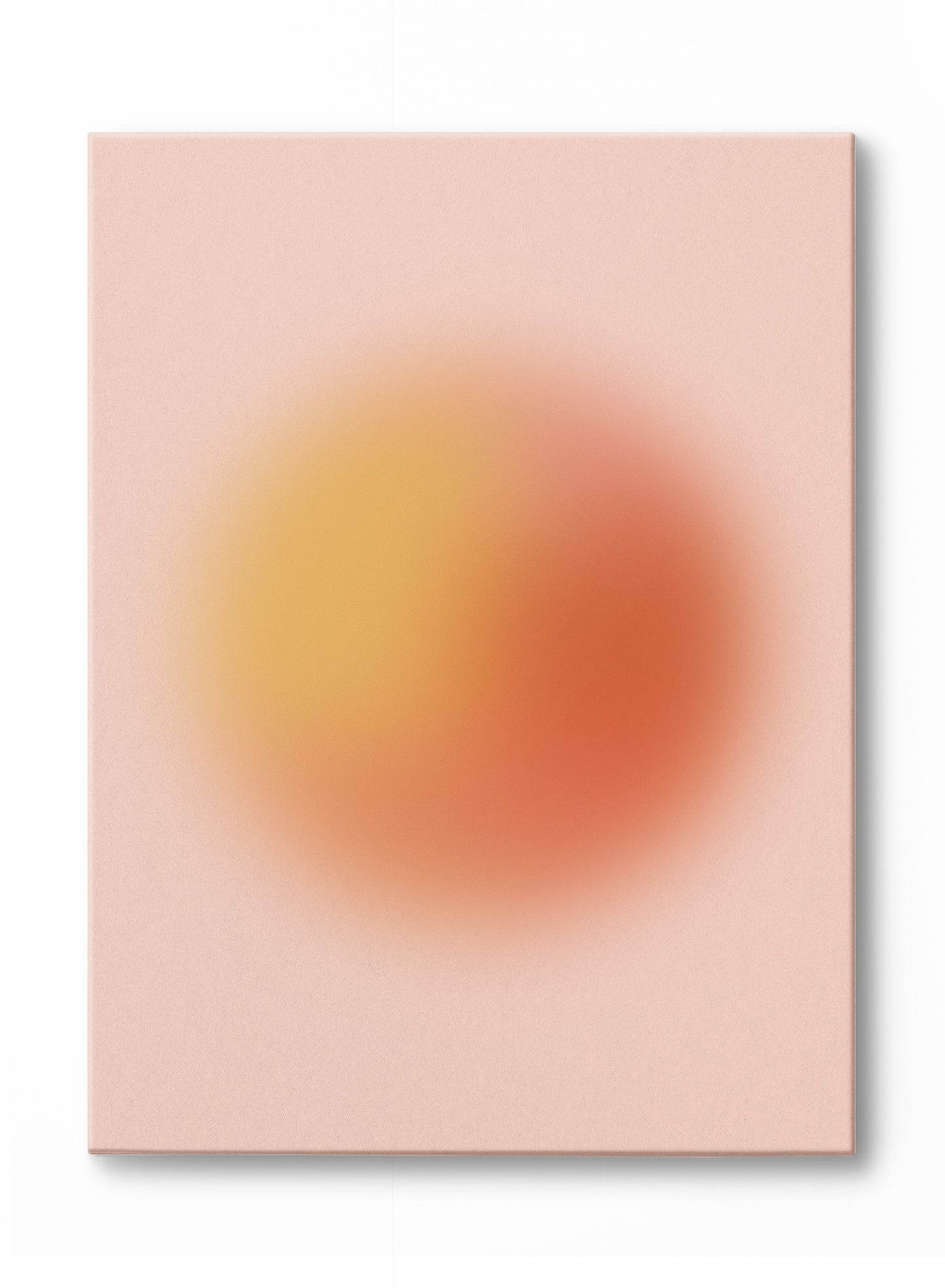 Infuse a little fun in your decor with "Bubbly in Blush": a playful abstract print featuring a bold and blurry orange sphere layered over a baby pink background.