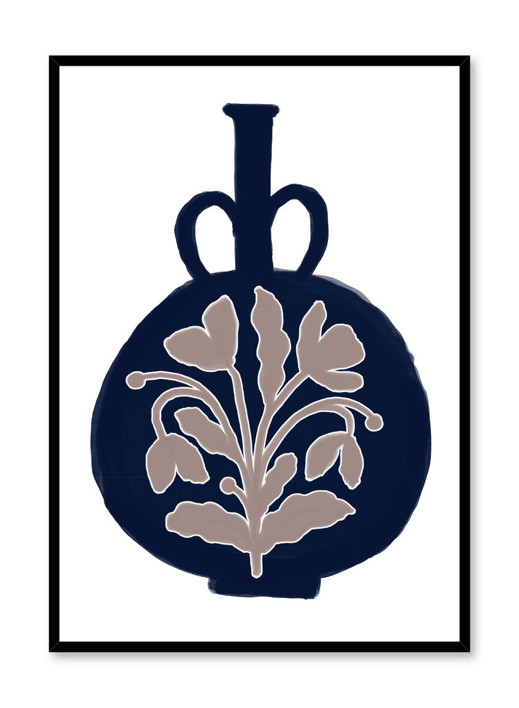 The Calliope poster is almost as inspiring as the muse it was named after! This beautiful navy blue vase illustration poster features an abstract flower in a stunning purple-grey color. The crisp white background creates a gorgeous contrast with the dark and irregularly-shaped vase.