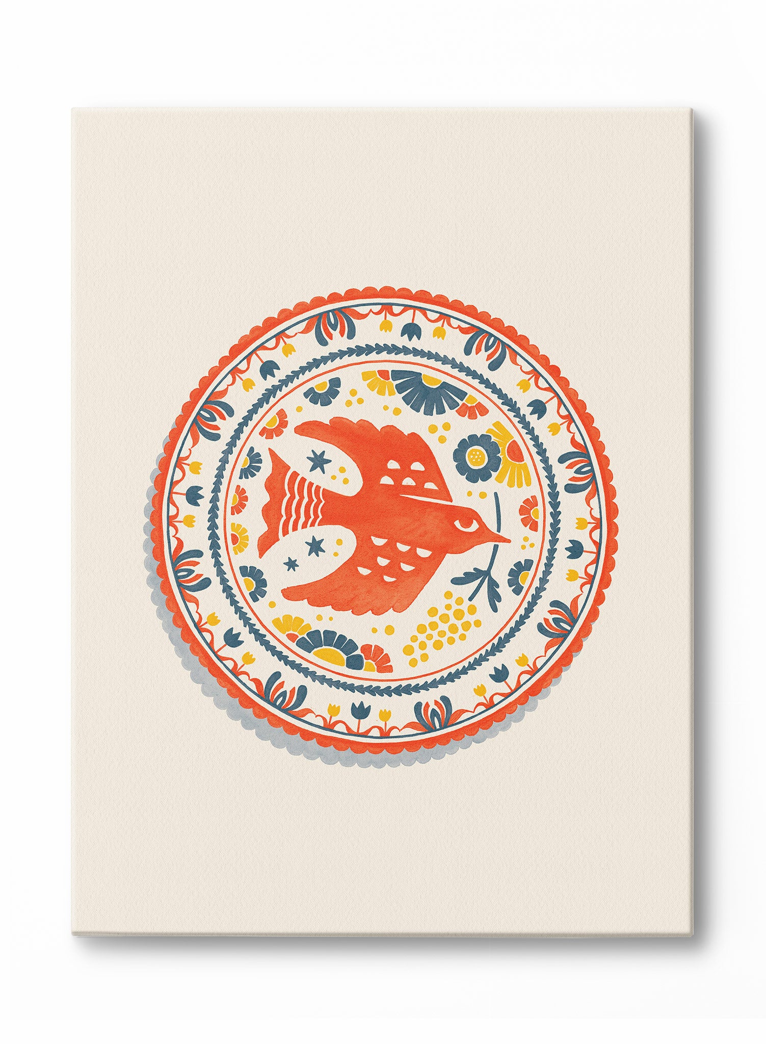 Perfect for a living room or study, this canvas pairs beautifully with rustic wood furnishings or vintage-inspired decor. Consider placing it above a mantelpiece or as part of a gallery wall to draw attention to its unique design. Complementary items like woven textiles or ceramic vases can enhance its folk art appeal, creating a cozy and inviting atmosphere.