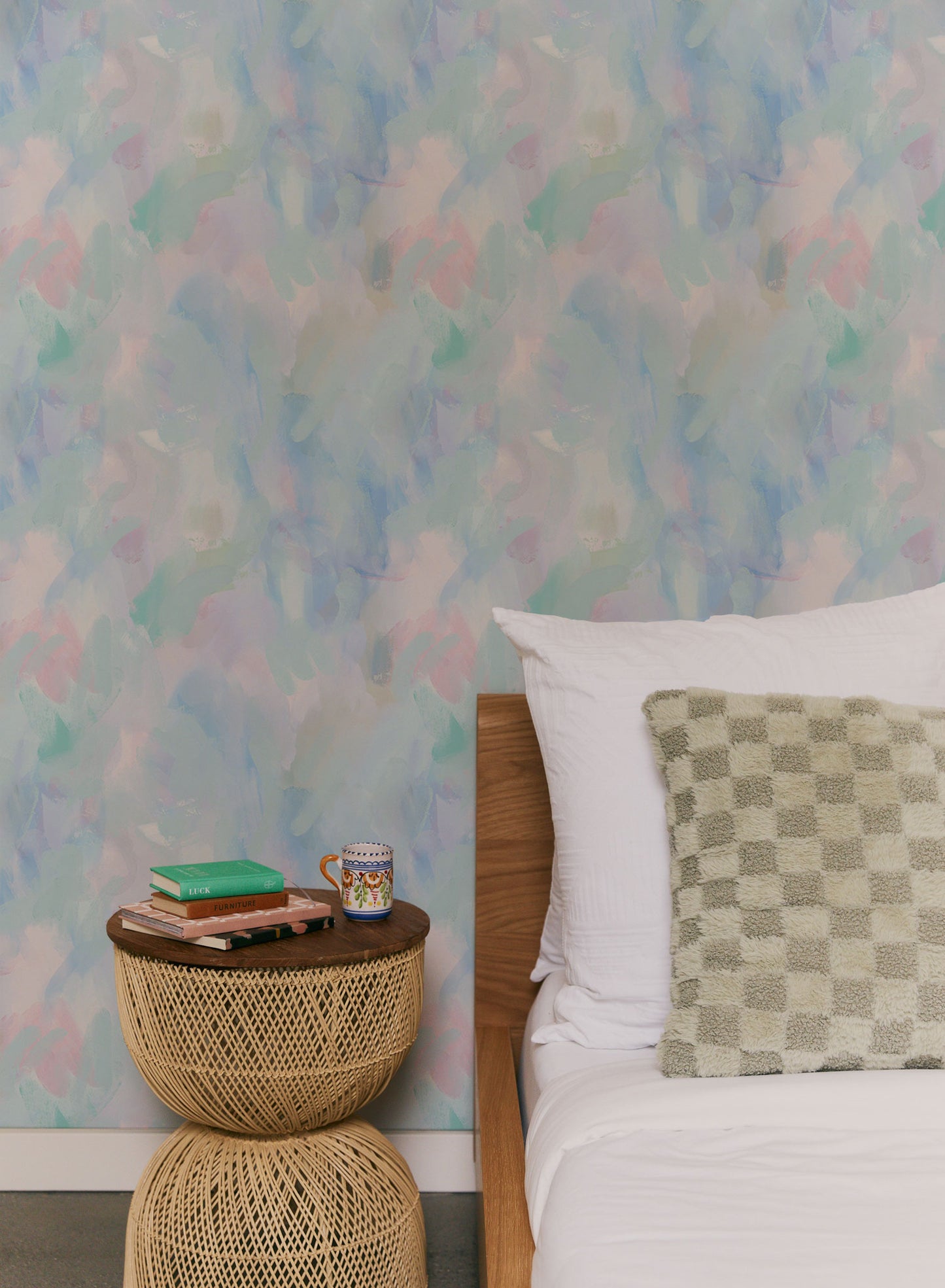 Turn your home into a Casa de Pastel with this ethereal wallpaper composed of painterly strokes in pastel colors.