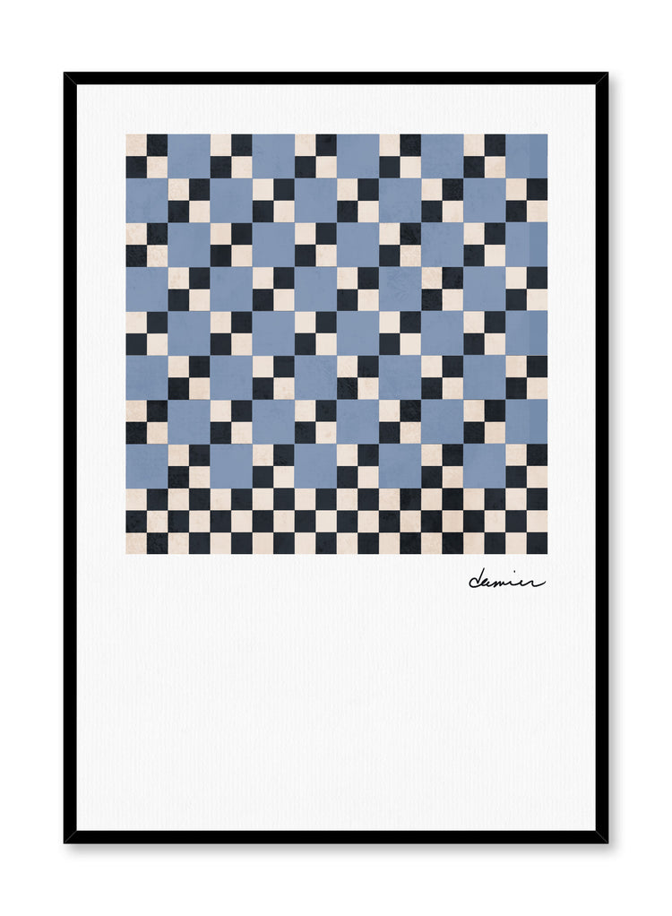 Who said a pixelated image was a bad thing? The Damier poster is a fun geometric composition evoking a chessboard design. A checkered design of blue, beige and black squares take up the upper section of this print, while a white section underlines the pattern, giving it a minimalist and elevated allure.