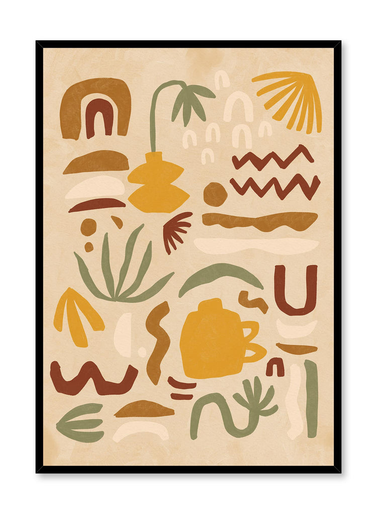 It’s no secret: the Earth holds endless beauty, and some of it can be found in this boho print! The ‘Earthy Beauty’ poster is a design composition featuring many of the bohemian classics like plants, rainbows, vases and organic shapes. With its palette of fun yellow and green and soothing beige and brown, this poster will add a pop of color to your kids’ decor while matching your neutral aesthetic.