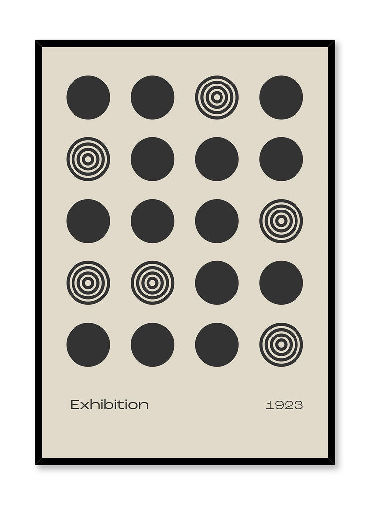 Calling all lovers of Bauhaus design! The Florence poster offers a fun take on classic Bauhaus geometric patterns. This black and beige art print features a mesmerizing combination of concentric and black circles. Combine this poster in with more minimalist prints for a stunning vintage touch.