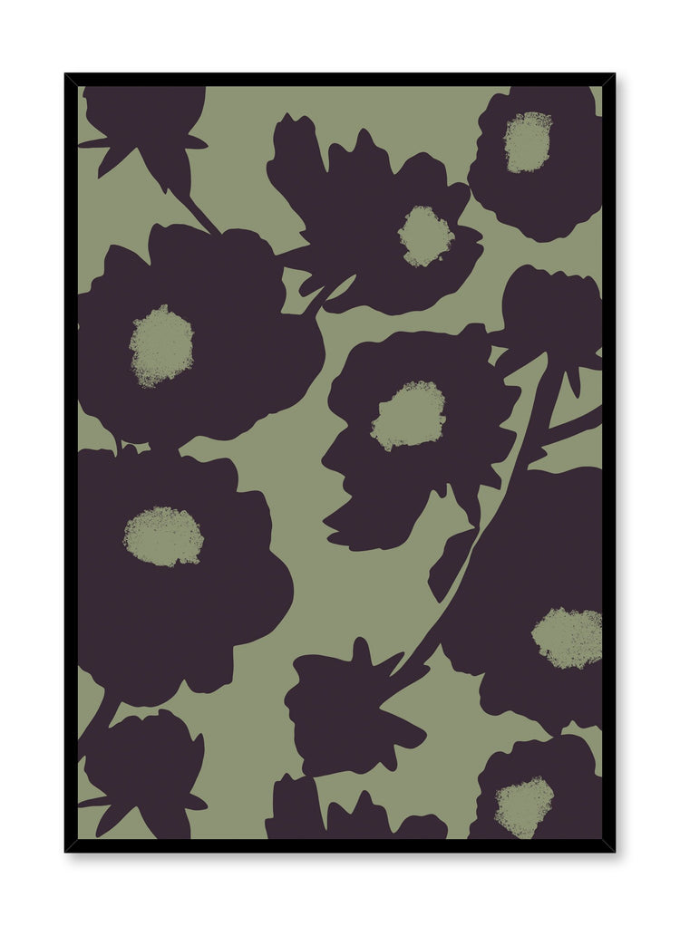 • "Flower Bush in Green" is a minimalist illustration poster by Opposite Wall in black and beige of abstract flower bush inspired by French painter Henri Matisse.