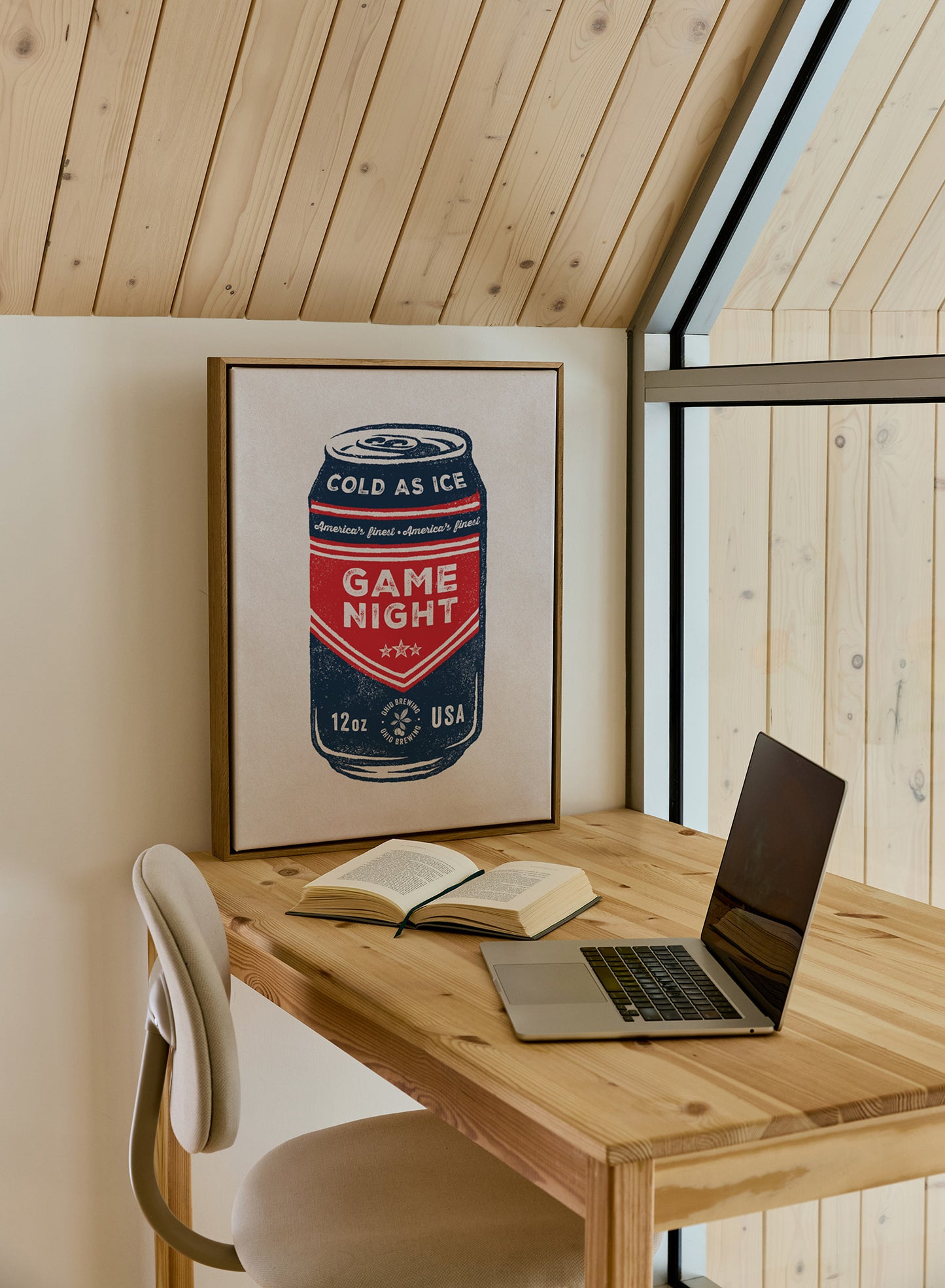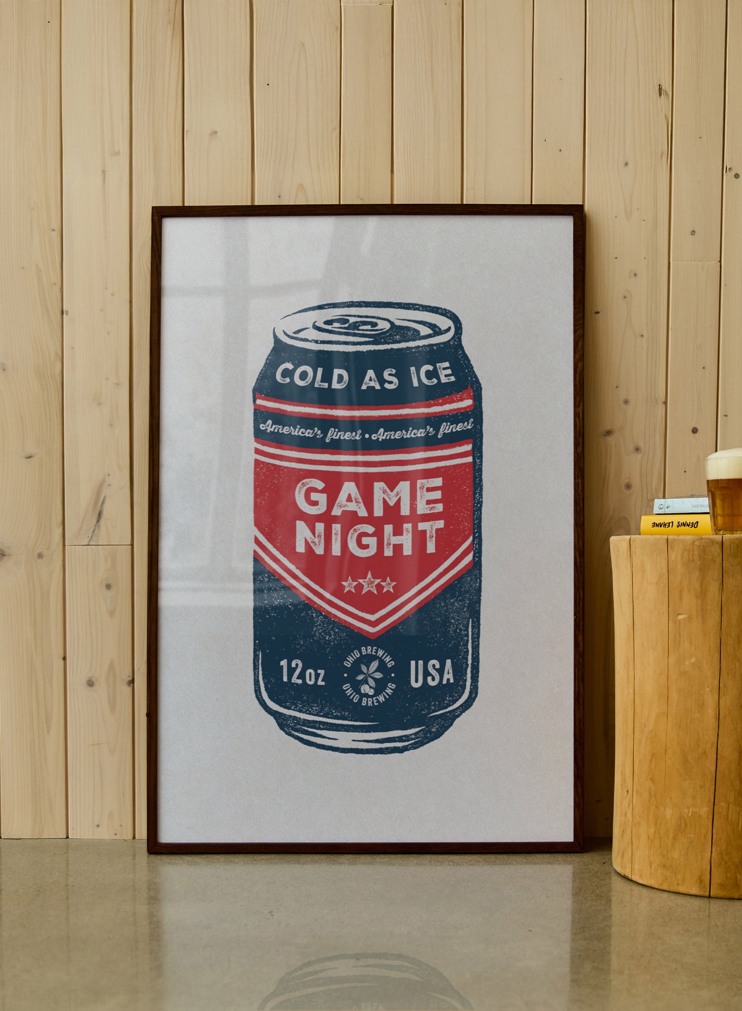 Game Night in Columbus brings the home team energy straight to your walls. A hockey-inspired beer can print that toasts to your fandom with flair. Confident, clever, and full of charm—it’s made for spaces where the cheers are loud and the love for the game runs deep. 🏒🍻