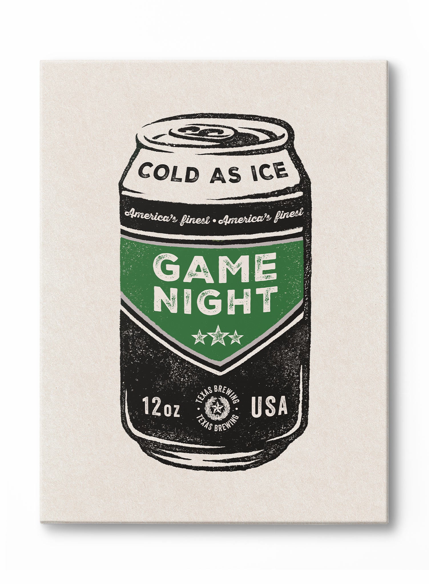 Game Night in Dallas brings the home team energy straight to your walls. A hockey-inspired beer can print that toasts to your fandom with flair. Confident, clever, and full of charm—it’s made for spaces where the cheers are loud and the love for the game runs deep. 🏒🍻