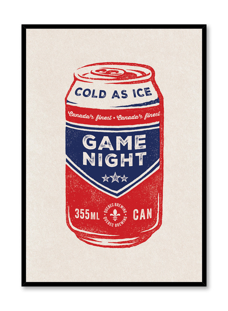 Game Night in Montreal brings the home team energy straight to your walls. A hockey-inspired beer can print that toasts to your fandom with flair. Confident, clever, and full of charm—it’s made for spaces where the cheers are loud and the love for the game runs deep. 🏒🍻