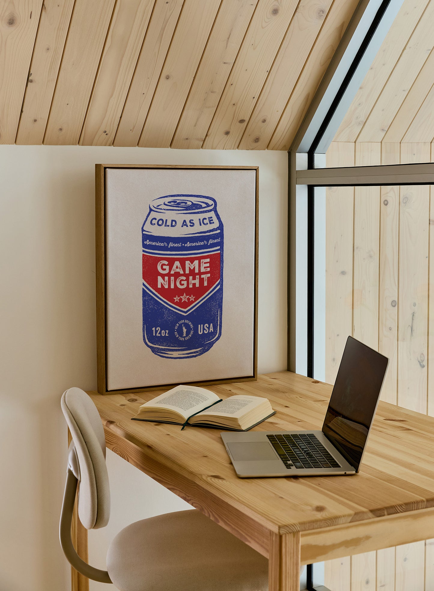 Game Night in New York brings the home team energy straight to your walls. A hockey-inspired beer can print that toasts to your fandom with flair. Confident, clever, and full of charm—it’s made for spaces where the cheers are loud and the love for the game runs deep. 🏒🍻