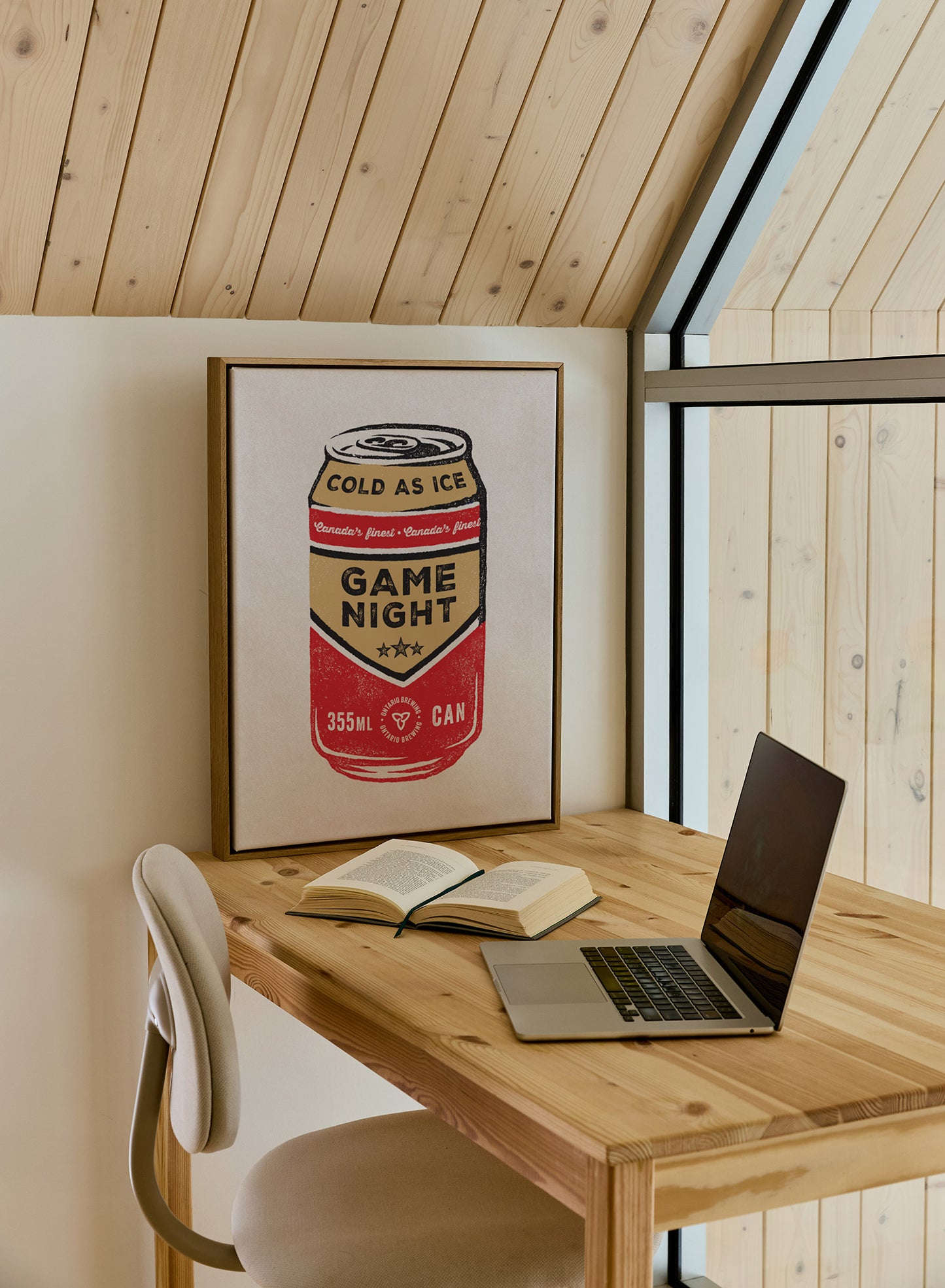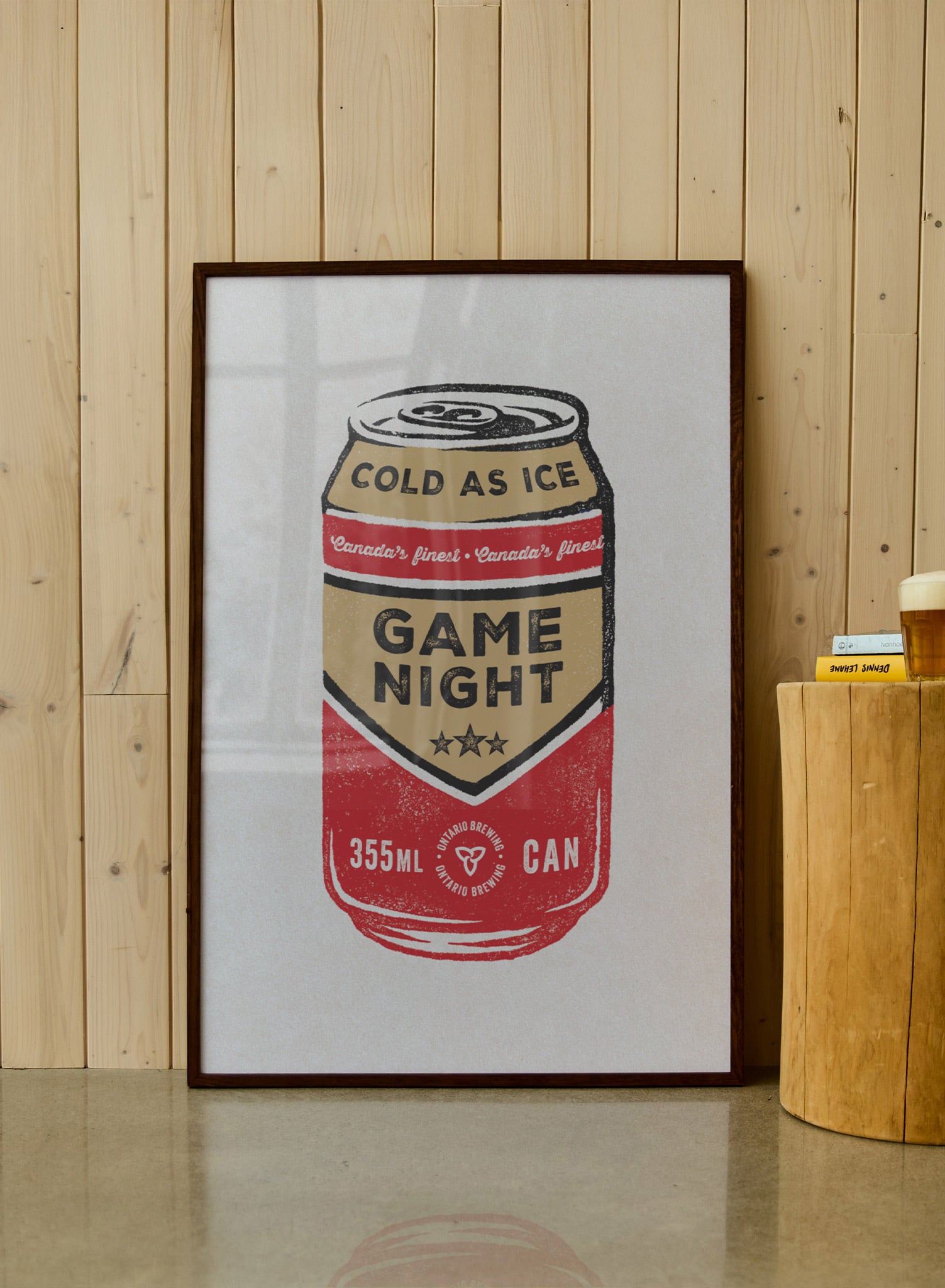 Game Night in Ottawa brings the home team energy straight to your walls. A hockey-inspired beer can print that toasts to your fandom with flair. Confident, clever, and full of charm—it’s made for spaces where the cheers are loud and the love for the game runs deep. 🏒🍻