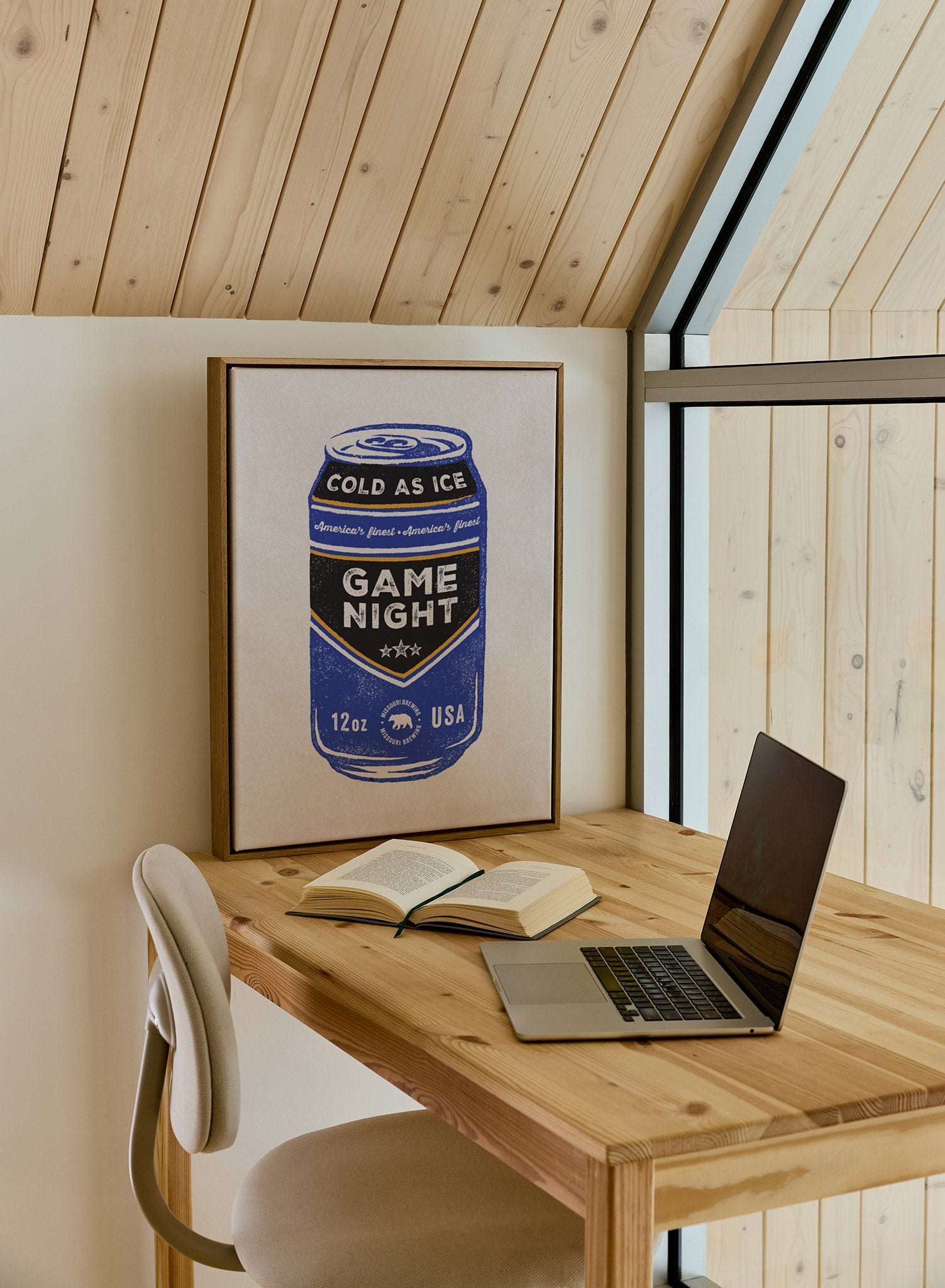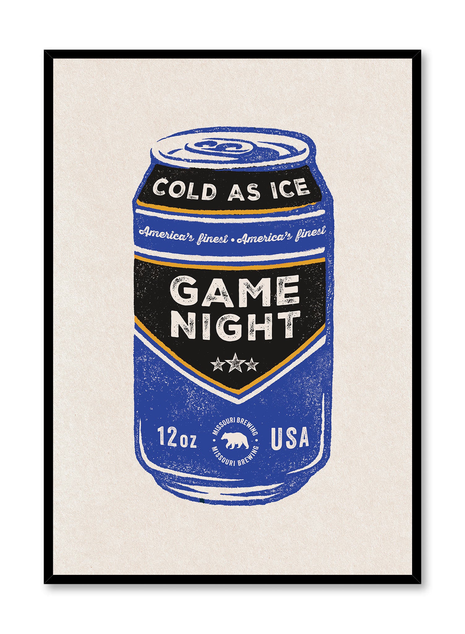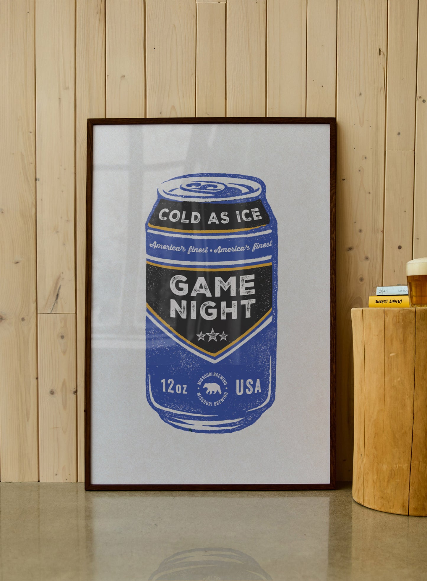 Game Night in St. Louis brings the home team energy straight to your walls. A hockey-inspired beer can print that toasts to your fandom with flair. Confident, clever, and full of charm—it’s made for spaces where the cheers are loud and the love for the game runs deep. 🏒🍻