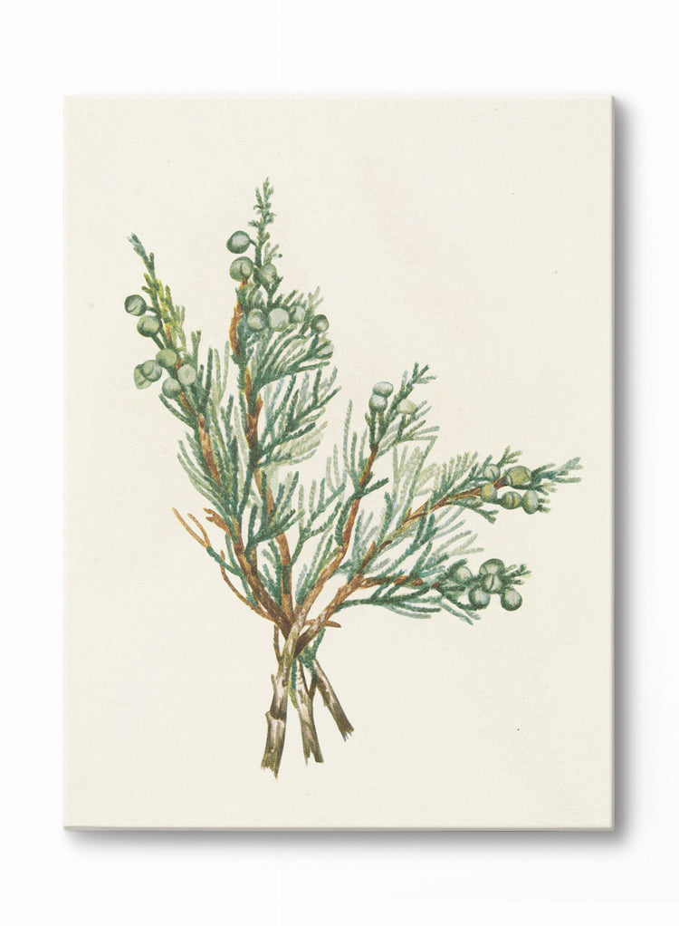 The careful rendering of the juniper offers a sense of quiet simplicity, evoking the understated beauty of winter plants. Its soft color palette brings a calming influence, creating a serene feeling ideal for indoor spaces during the colder months.