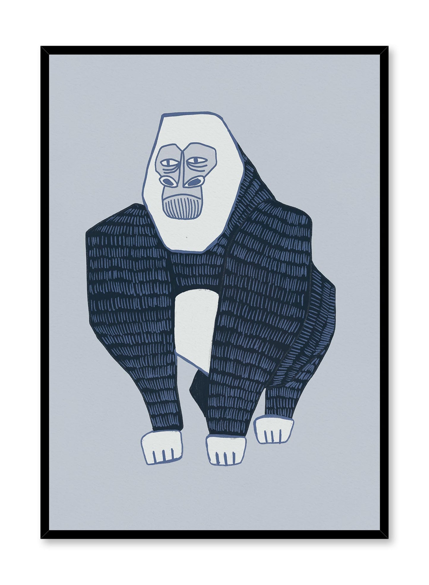 Let your kids play under this friendly gorilla’s watchful eye. The ‘Go Go Gorilla’ is the perfect animal poster for your child’s nursery or playroom. Little ones will love this gorilla’s calming blue colors and parents will be charmed by its minimalistic art style. Combine it with the ‘Banana Connoisseur’ and ‘Lion’s Lounge’ posters to form a terrific jungle trio!