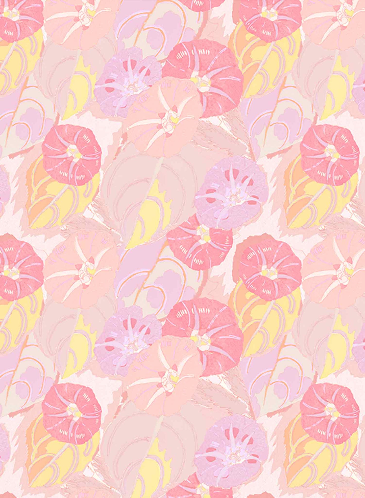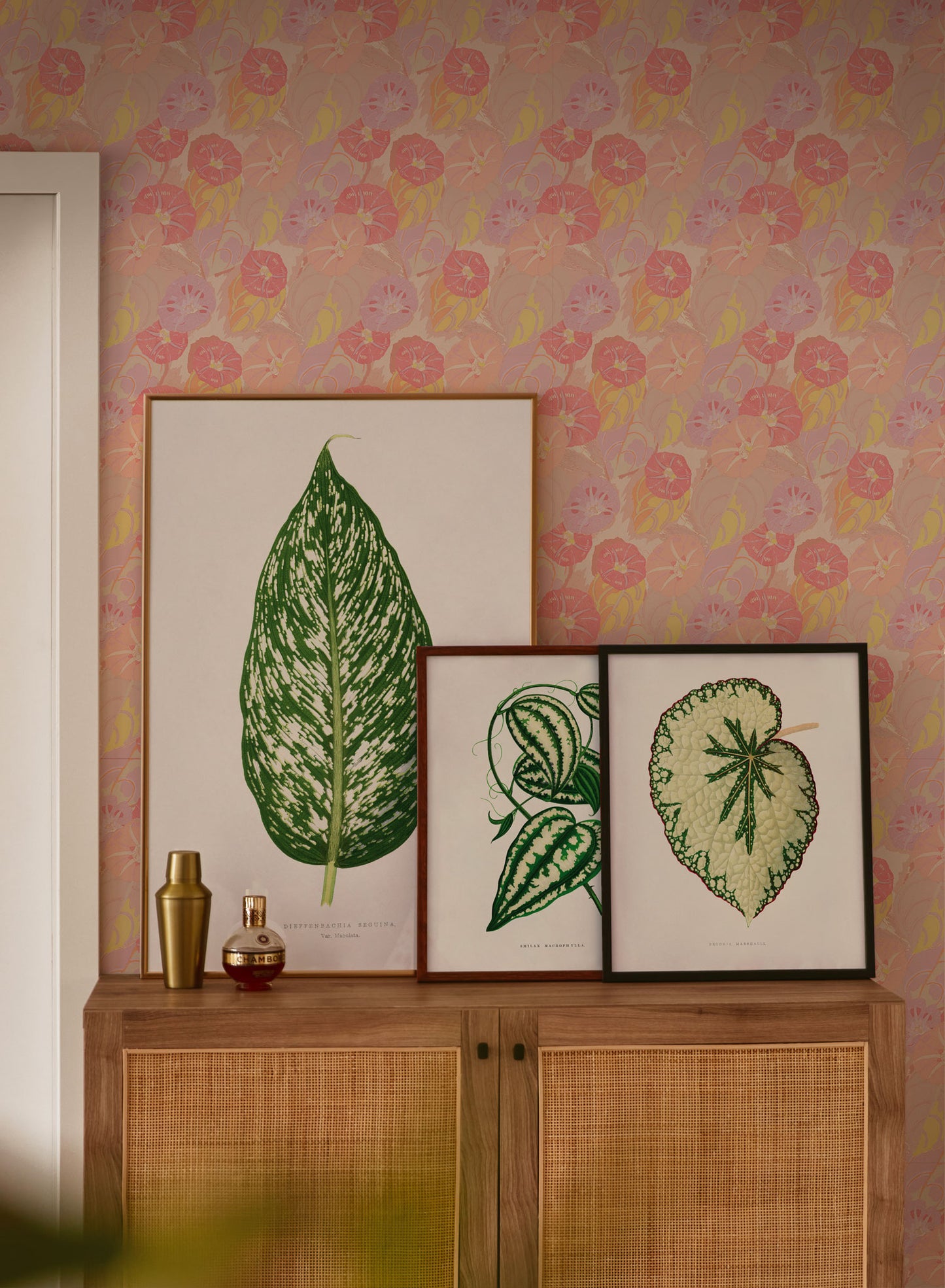 Get groovy with this show-stopping floral wallpaper pattern featuring various oversized flowers and leaves.