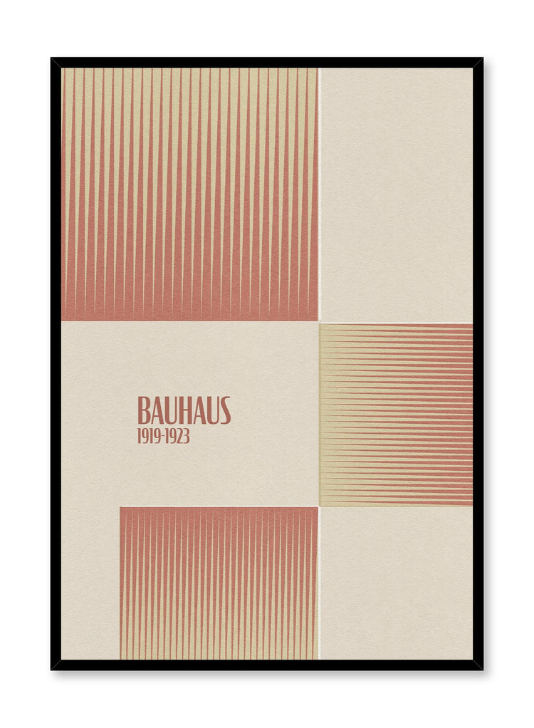 The first iteration of the Bauhaus movement took place in Germany between 1919 and 1923. This is when the world was first introduced to this mid-century modern art style and its beautiful vintage posters and typography. The Johannes art print features a yellow and orange color gradient contained in geometric squares over a beige background. If you love Bauhaus posters, make sure to add this one to your collection!