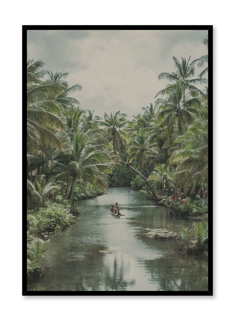 • Jungle Cruise is a minimalist photography of a small wood boat travelling through a calm river in the jungle by Opposite Wall.
