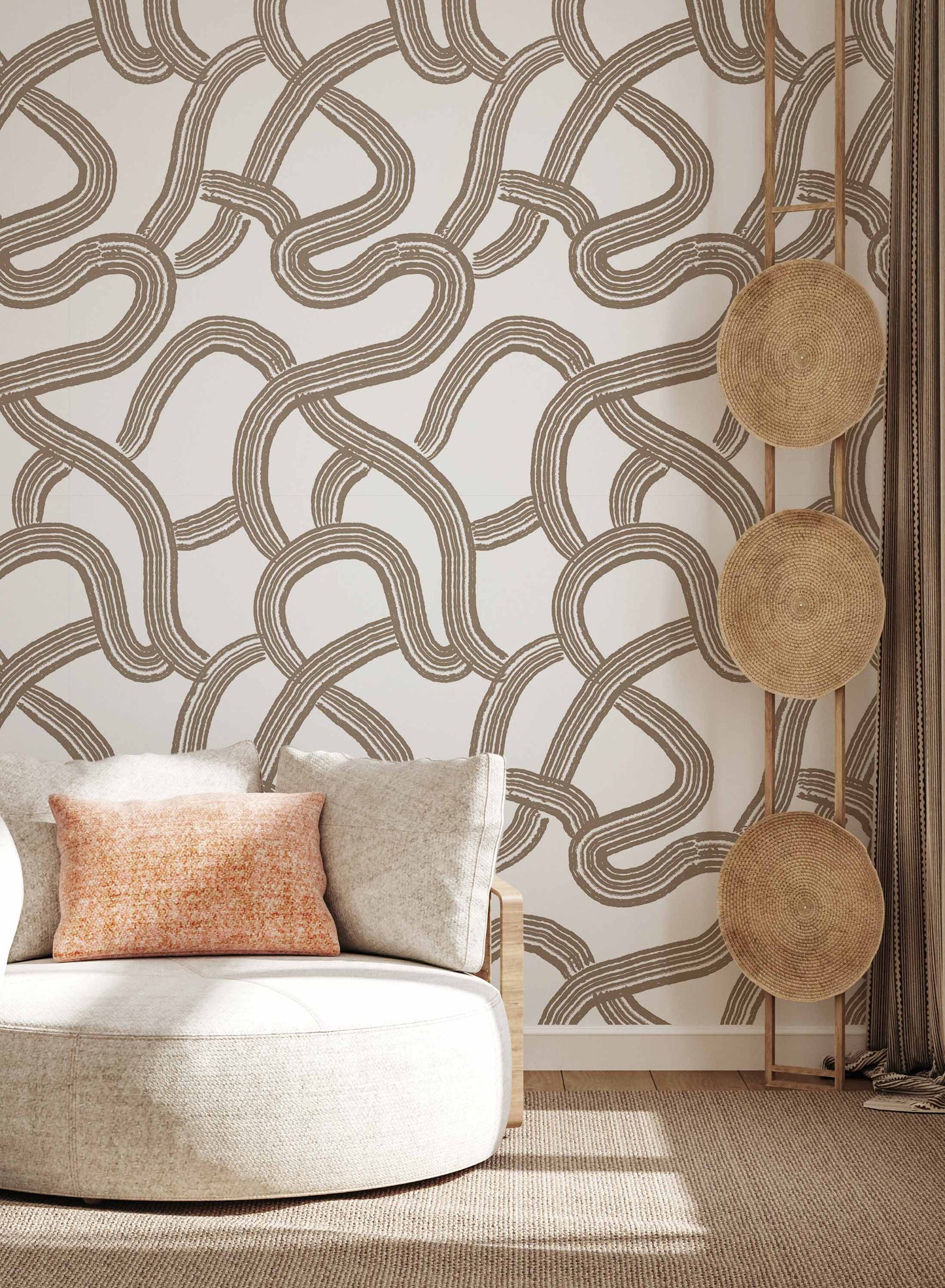 If you own some prints from the ‘Japandi’ collection, then you’ve just found the perfect wallpaper to complete your decor aesthetic! The ‘Kyoto’ wallpaper features loose striped curves haphazardly meandering over a neutral-toned background. Opt for the neutral gray option for a more subtle effect or go with the colorful brown alternative for a bolder statement wall. This design is ideal for modern and contemporary homes and is sure to please all those who like Scandinavian decor. Find this wallpaper in removable vinyl peel & stick or pre-pasted format today.