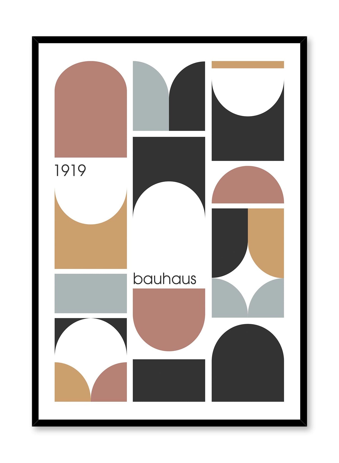The Lou poster is the pop of color your home needs! This playful art print includes a stunning color palette of faded red and blue, black, and mustard yellow over a white background. A mid-century modern typography with the word Bauhaus and the date 1919 completes this lovely vintage art print.