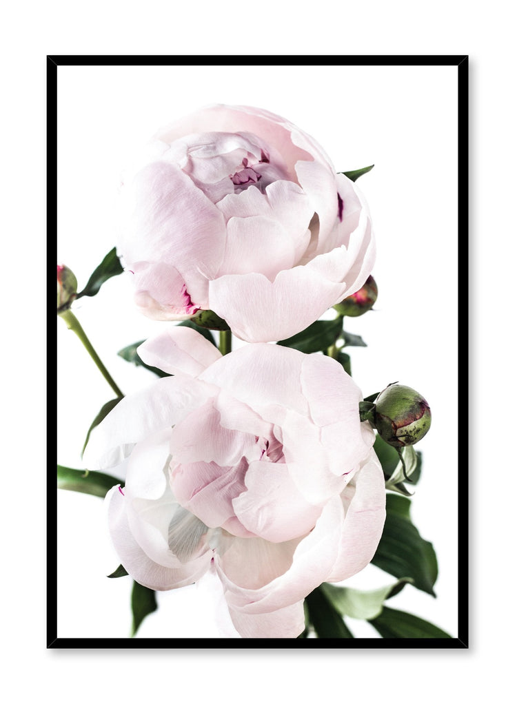 Two pretty peonies in the softest of pinks fill the space of this floral print with a soft, delicate texture you can almost feel.